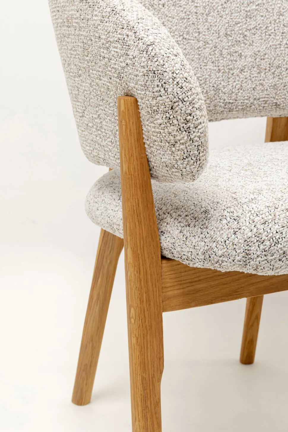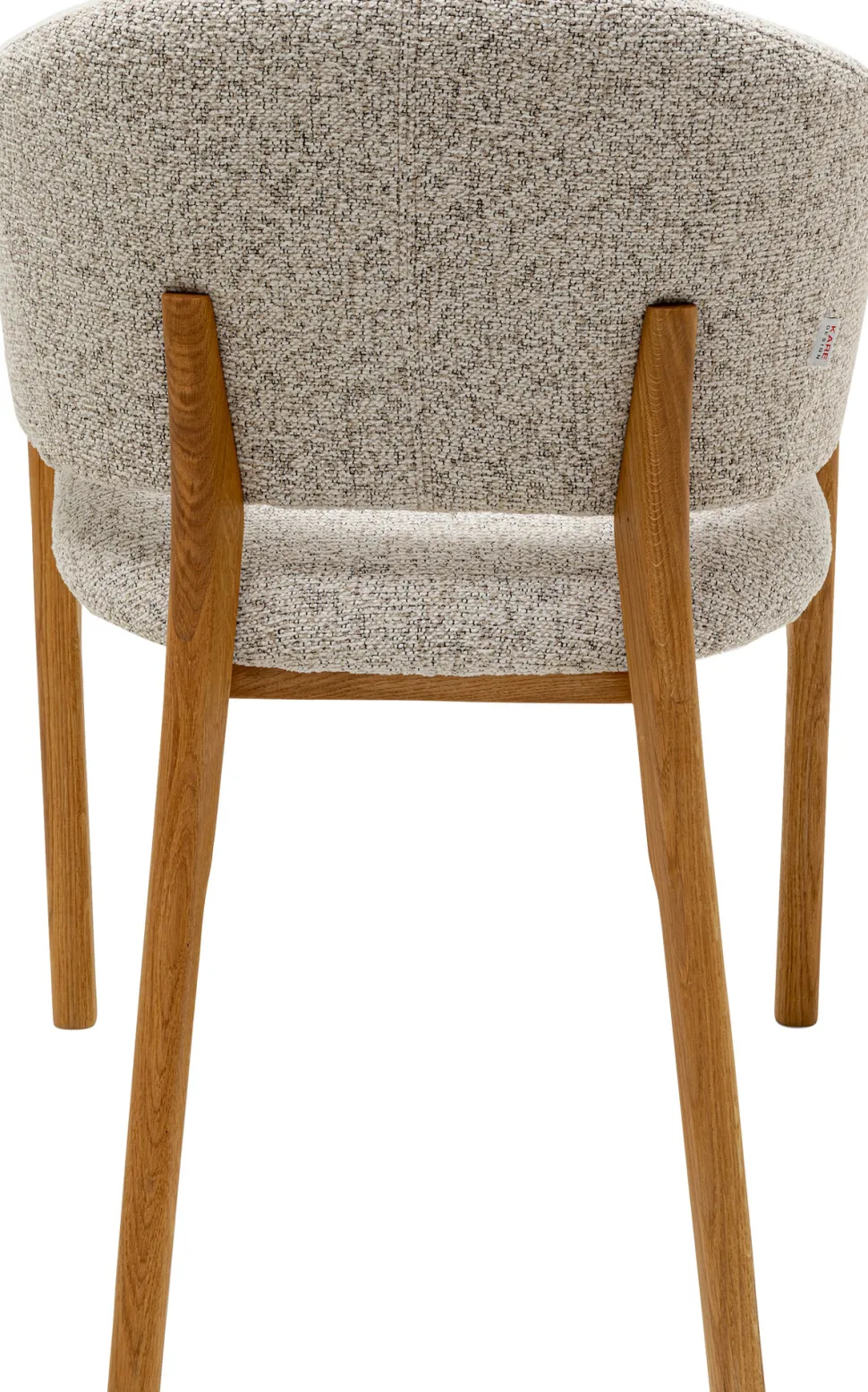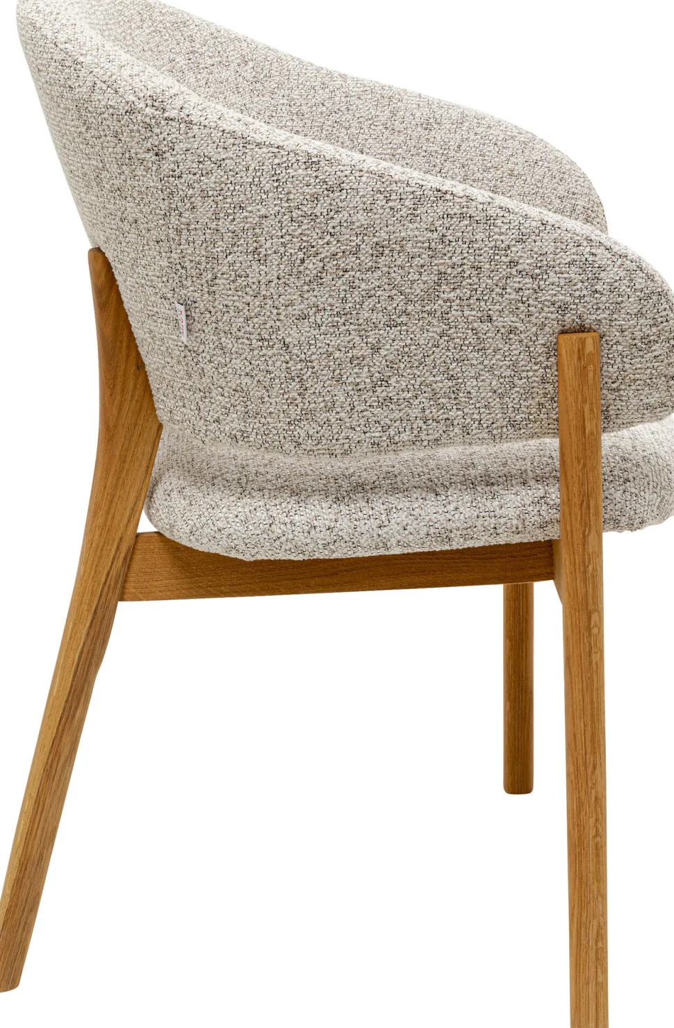 - Der beigefarbene Holzstuhl verspricht hohen Sitzkomfort mit seiner runden Lehne und der Schaumpolsterung