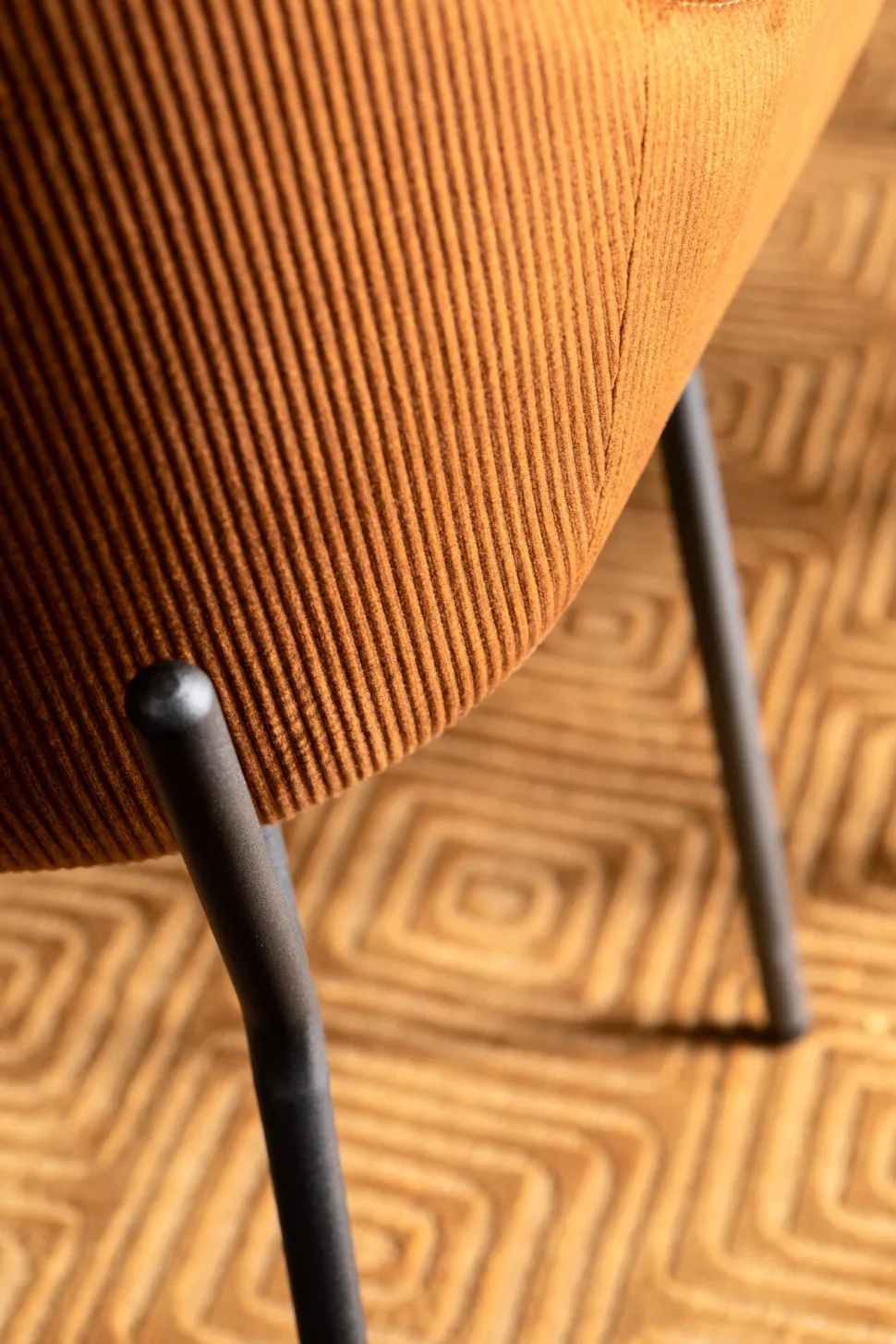 - Ein moderner Klassiker unter den Polsterstühlen in der angesagten Wohnfarbe Terracotta mit einem Bezug in Samtcord-Optik