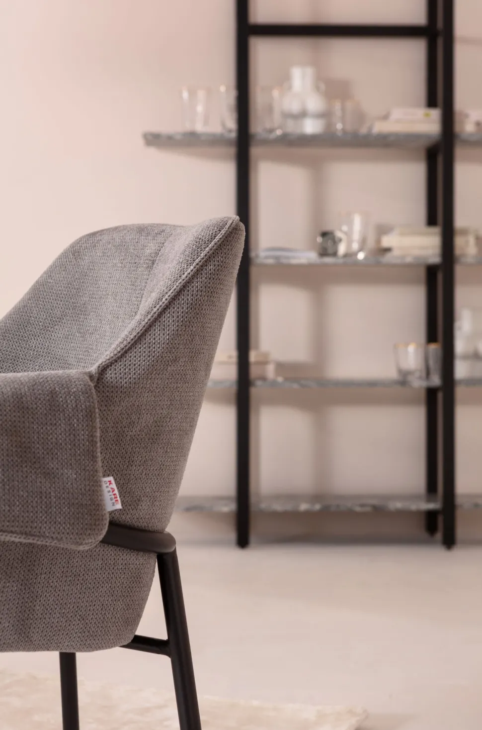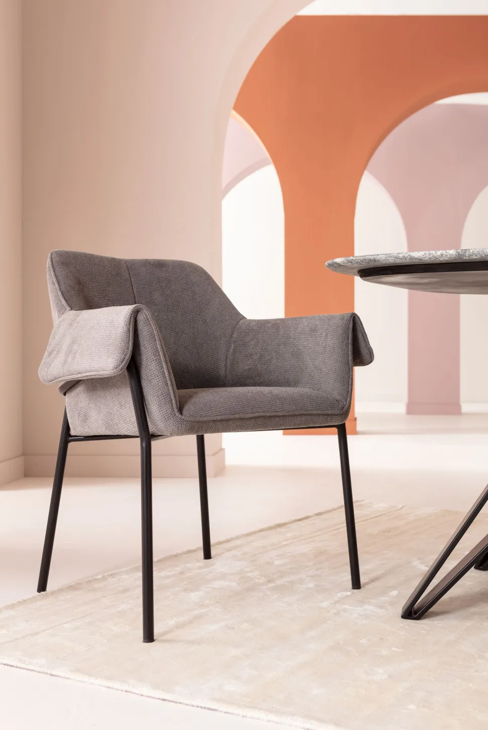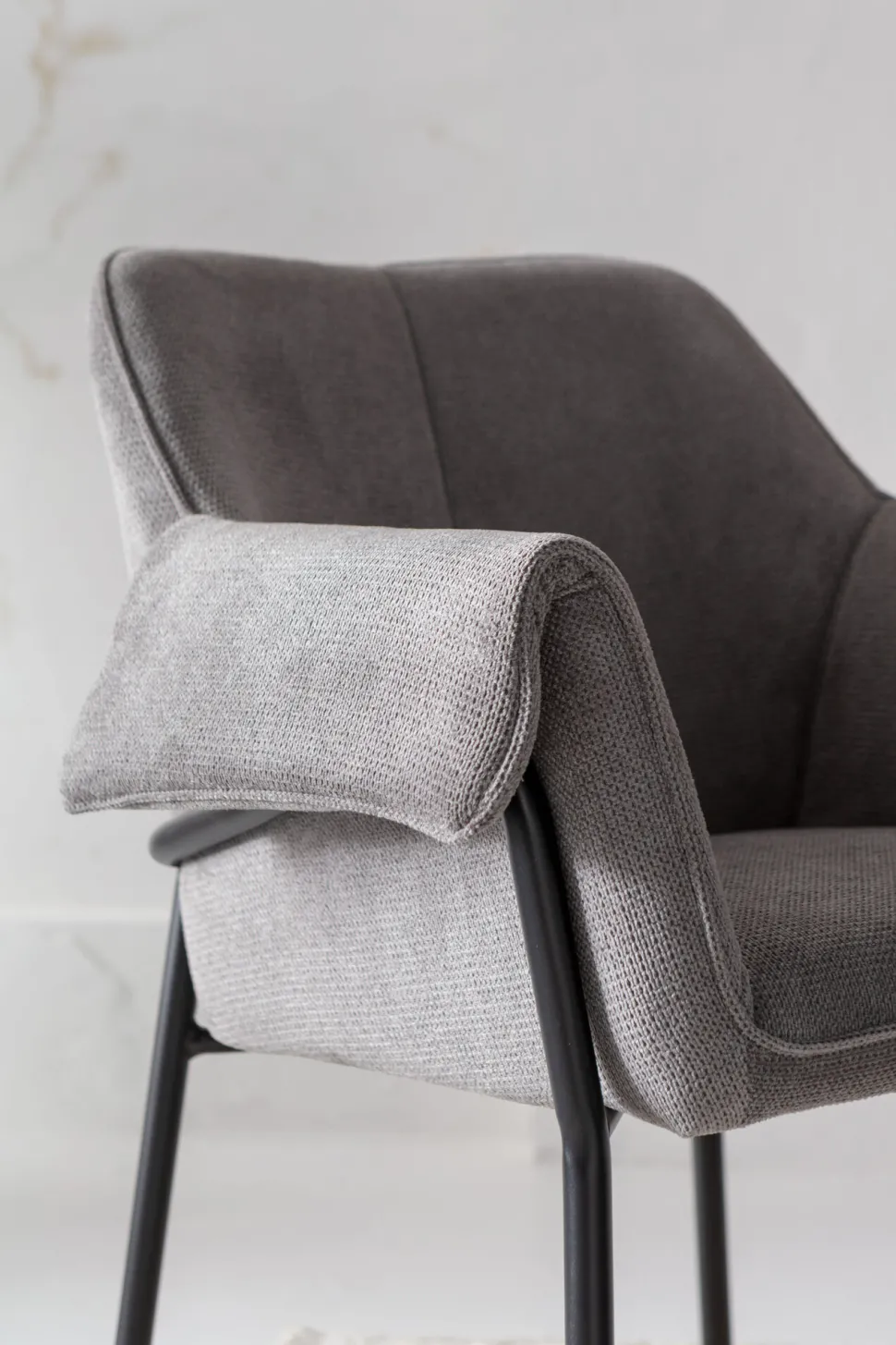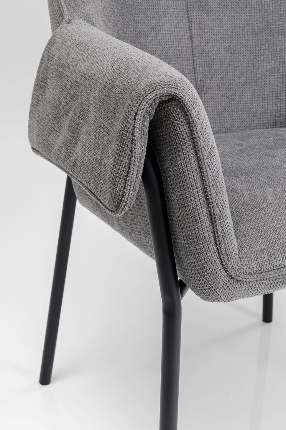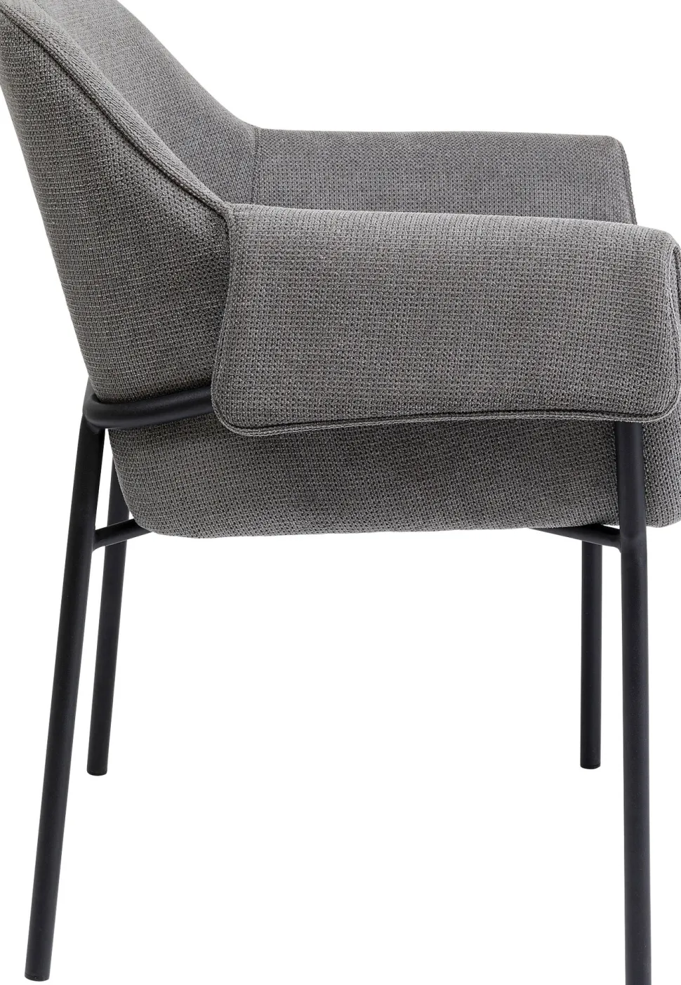 - Grauer Armlehnstuhl mit schlanken Metall-Beinen in Schwarz