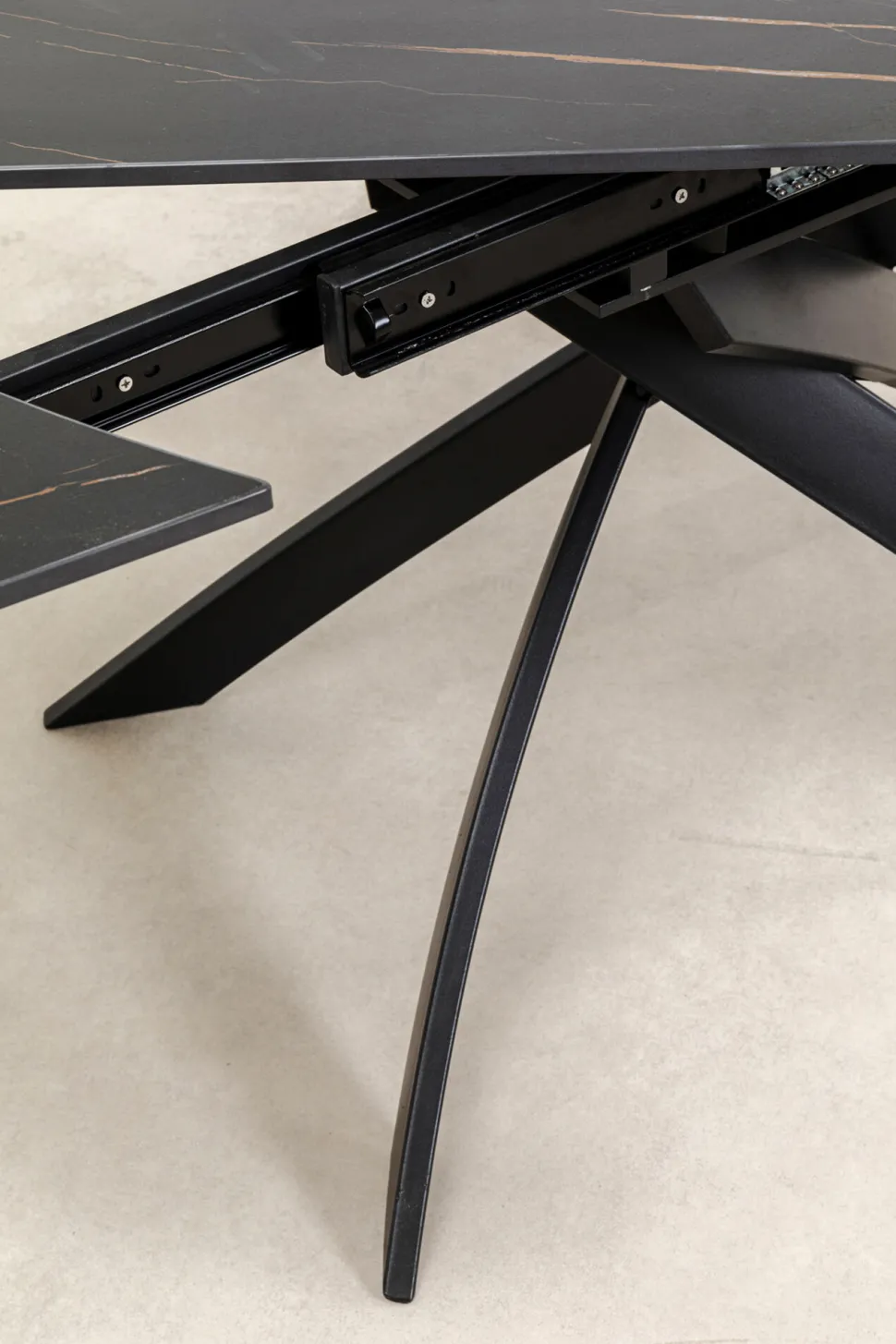 - Schwarzer Esstisch zum Ausziehen 76x120bzw.180x90cm (H/B/T) aus Metall mit Keramikplatte
