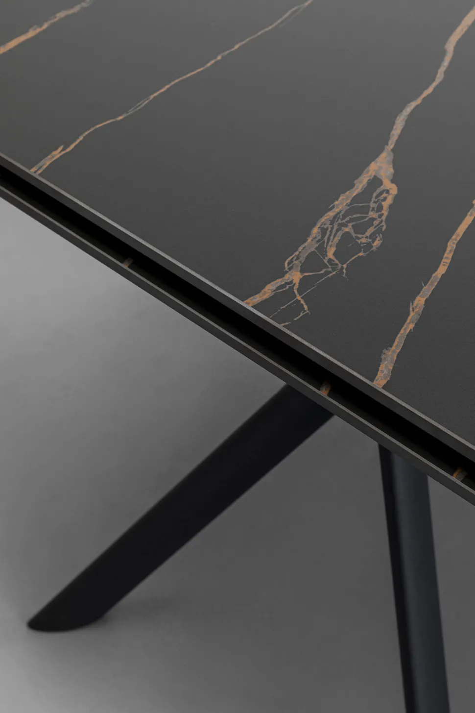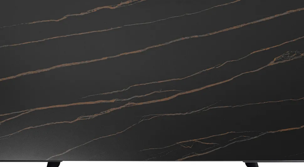 - Lackierte Tischplatte aus Steinzeug (12mm stark) in Schwarz mit dezenter heller Maserung