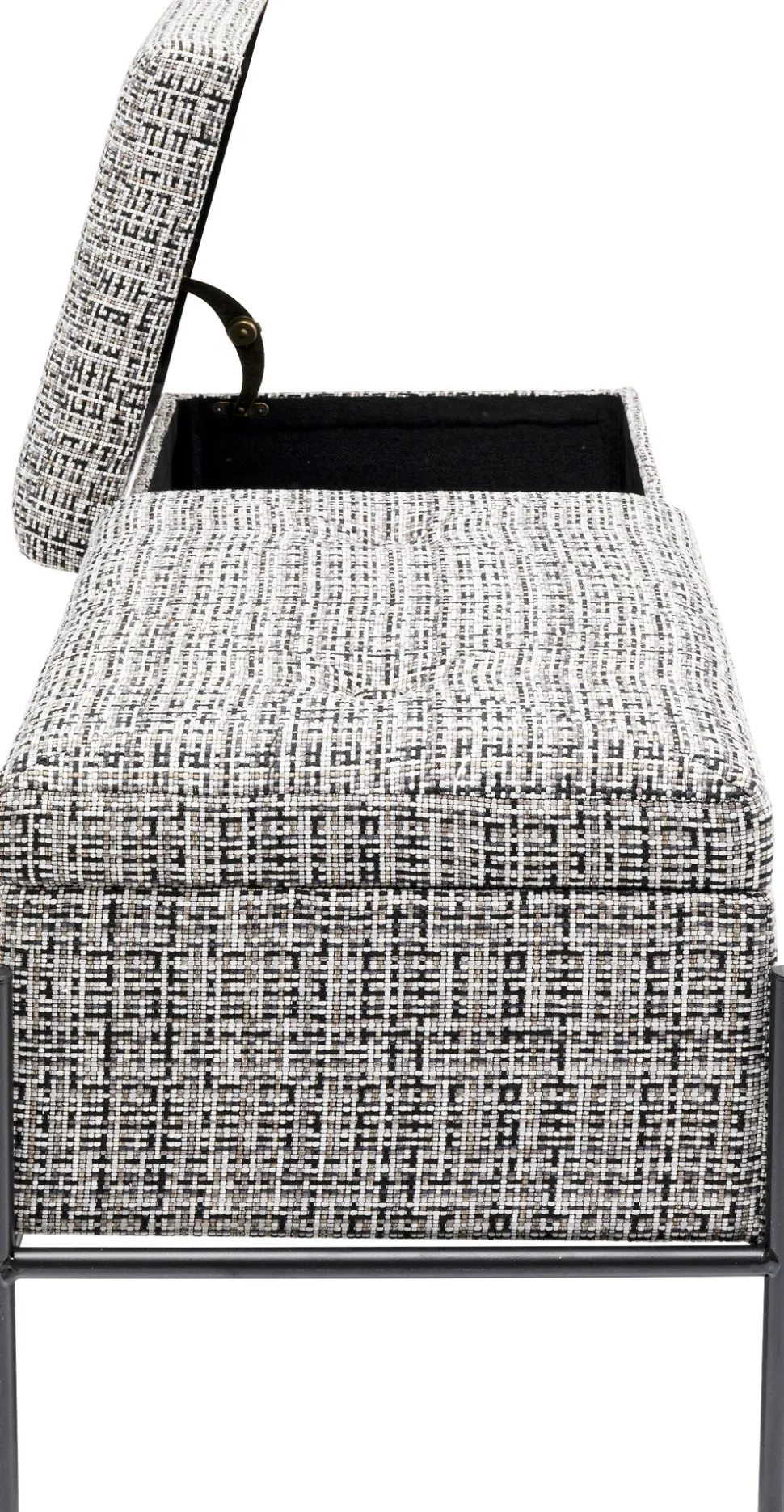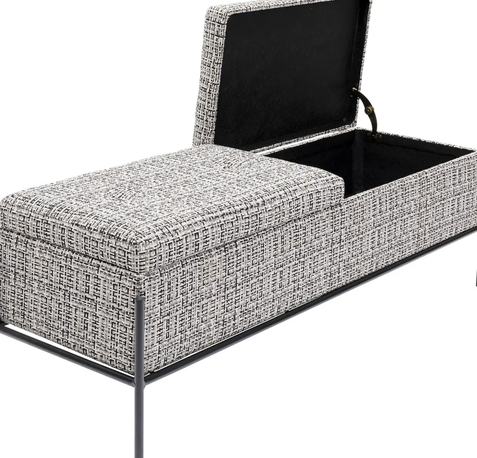 - Edle Designer Bank mit Strukturstoff in Schwarz, Weiß und Grau und filigranem Stahl Gestell