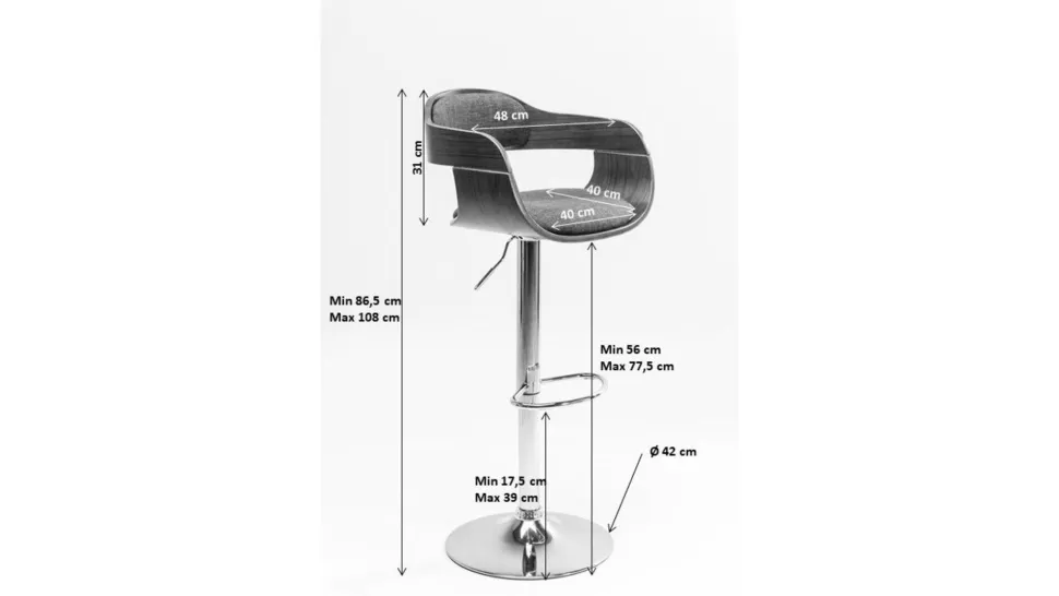 - Dank der Gasdruckfeder ist dieser Tresenhocker von 58 auf 79 cm höhenverstellbar