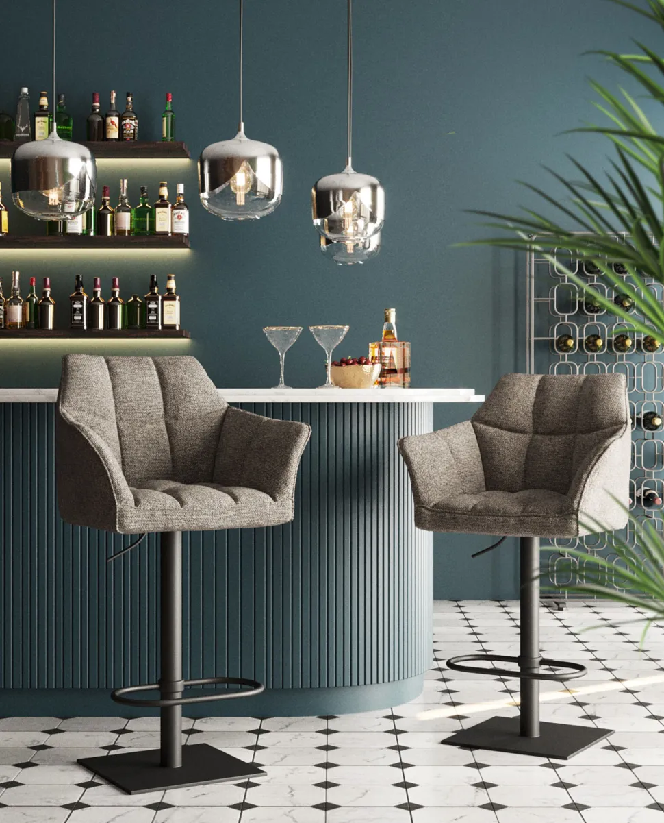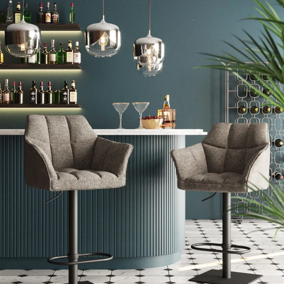 - Höhenverstellbarer und drehbarer Barhocker mit Armlehnen in Grau mit komfortabler Fußstütze