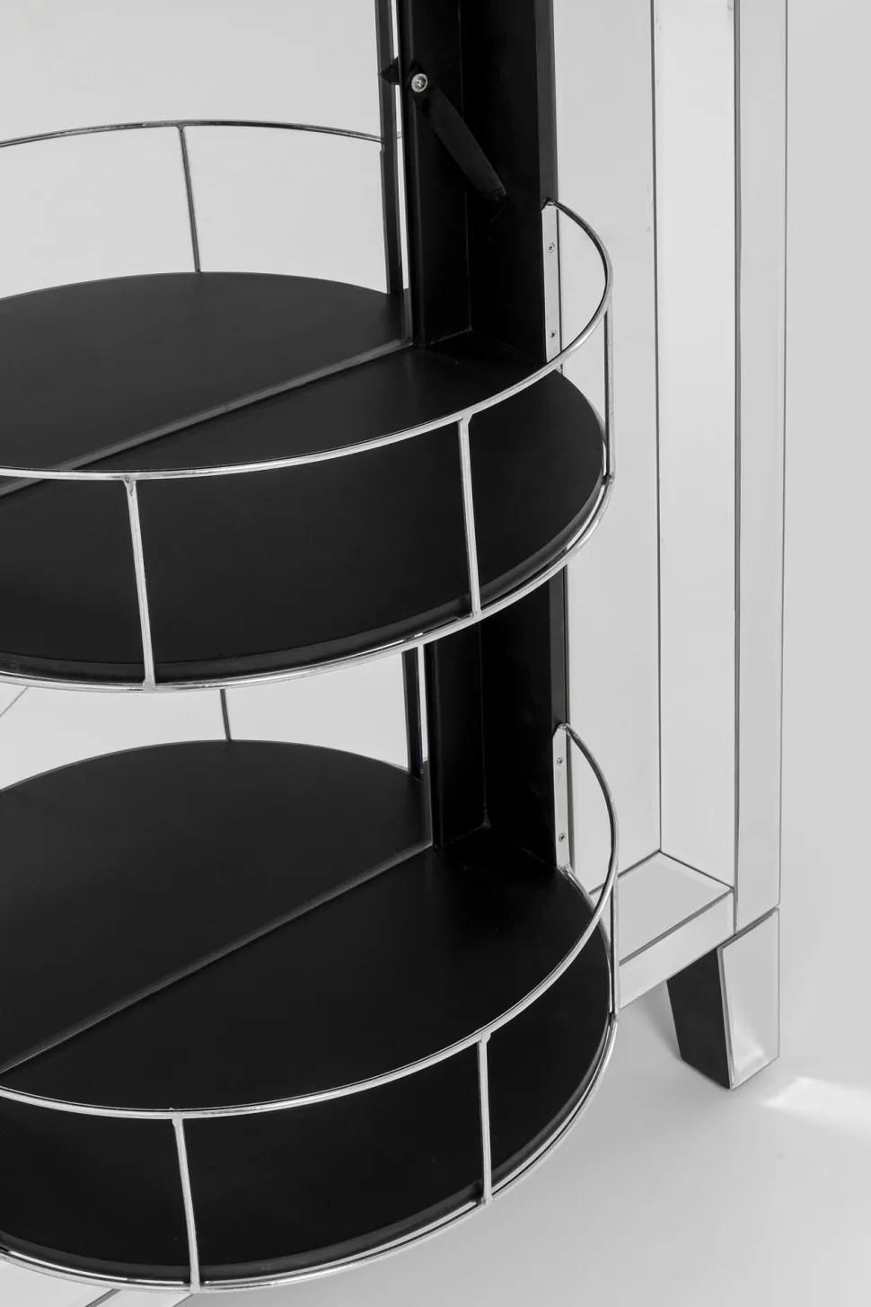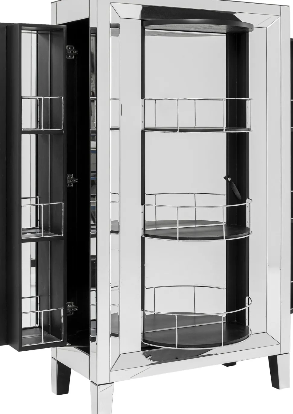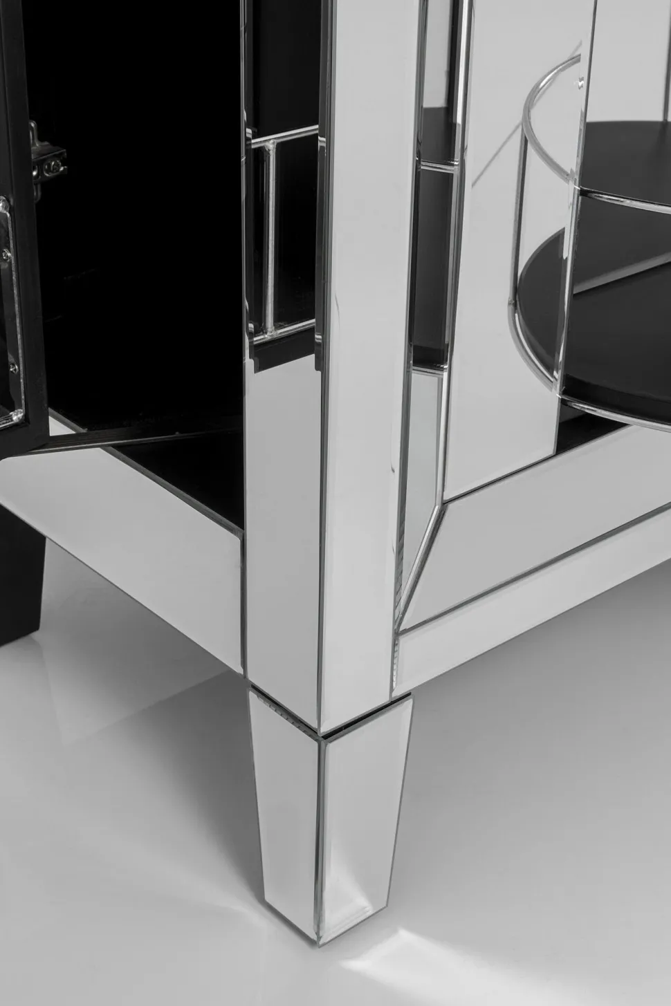 - Barschrank der absoluten Luxusklasse mit verspiegelten Fronten und Seitenteilen, edlem Facettenschliff, Glasknauf