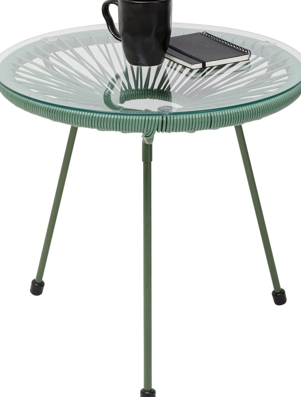 - Runder Beistelltisch in Grün mit Glasplatte für drinnen und draußen, 50 x 50 x 50 Zentimeter (H/B/T)