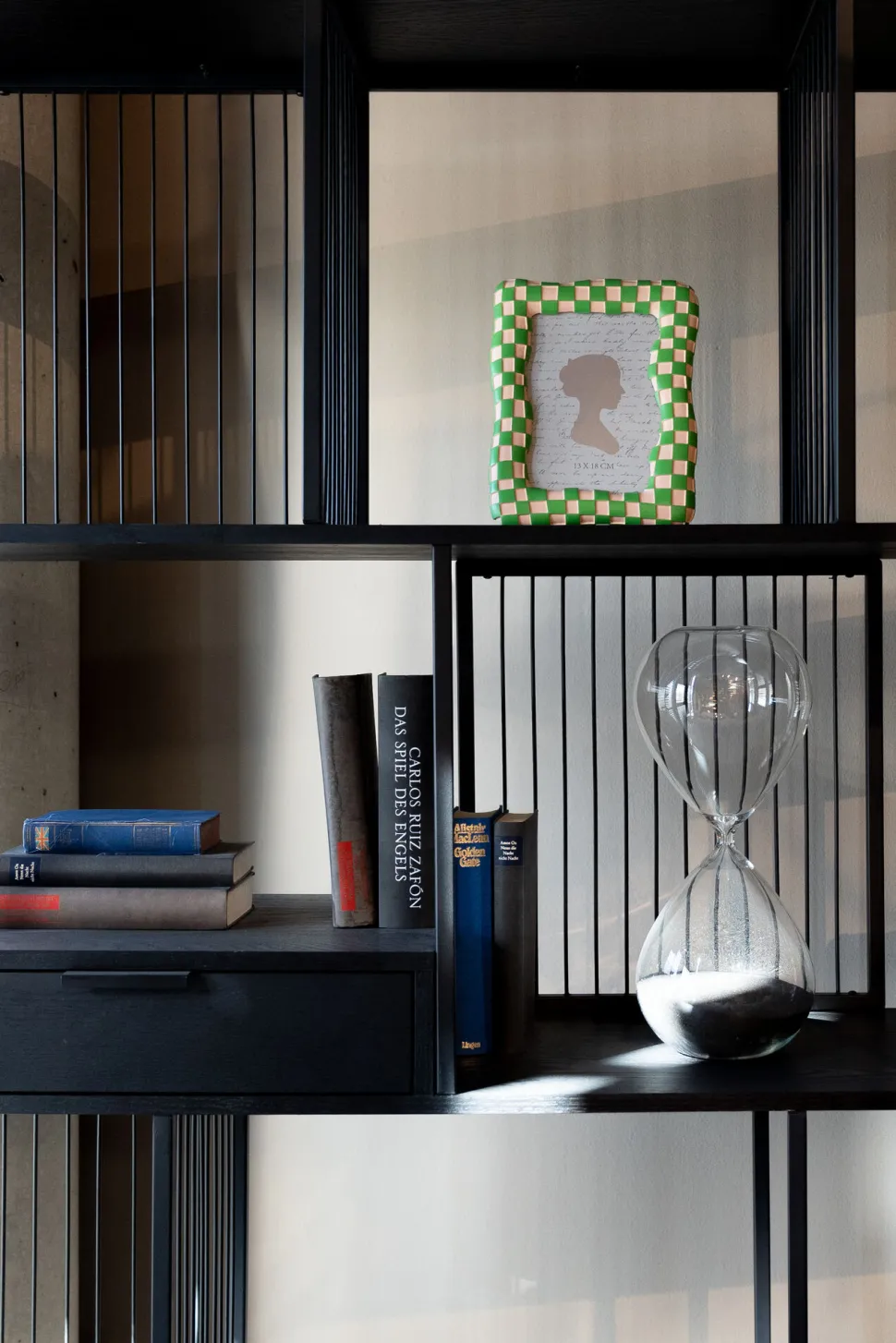 - Der Rahmen begeistert mit seiner dynamischen Form und klassischem Schachbrett-Muster in frischem Grün