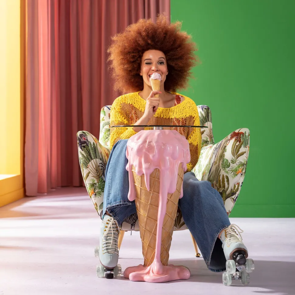 - Rosa Erdbeer-Eis in einer Waffel als Tischfuß aus formstabilem Polyresin