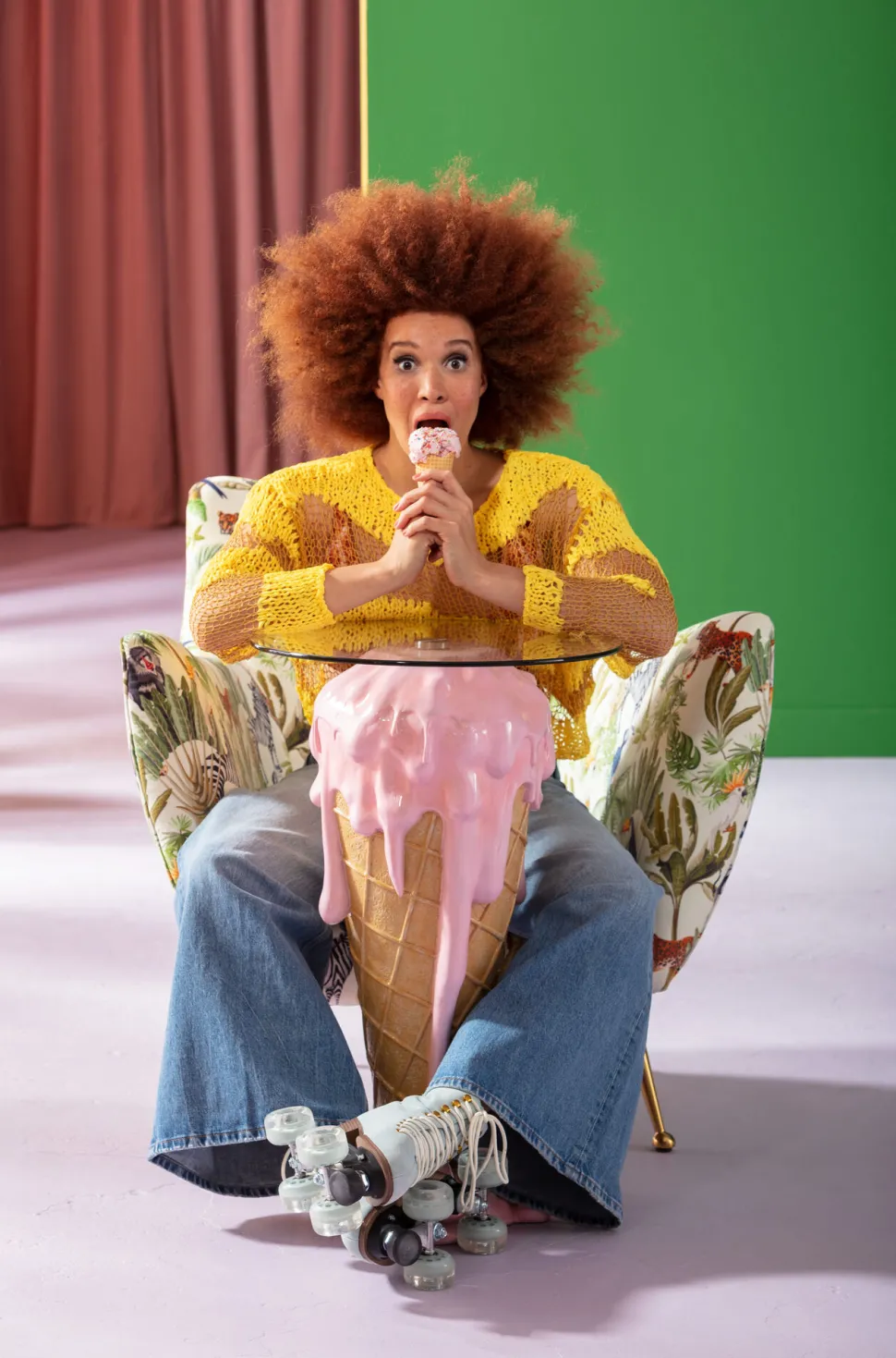 - Servieren Sie Snacks und Drinks auf dem runden Glastisch – oder laden Sie auf einen Eisbecher ein!