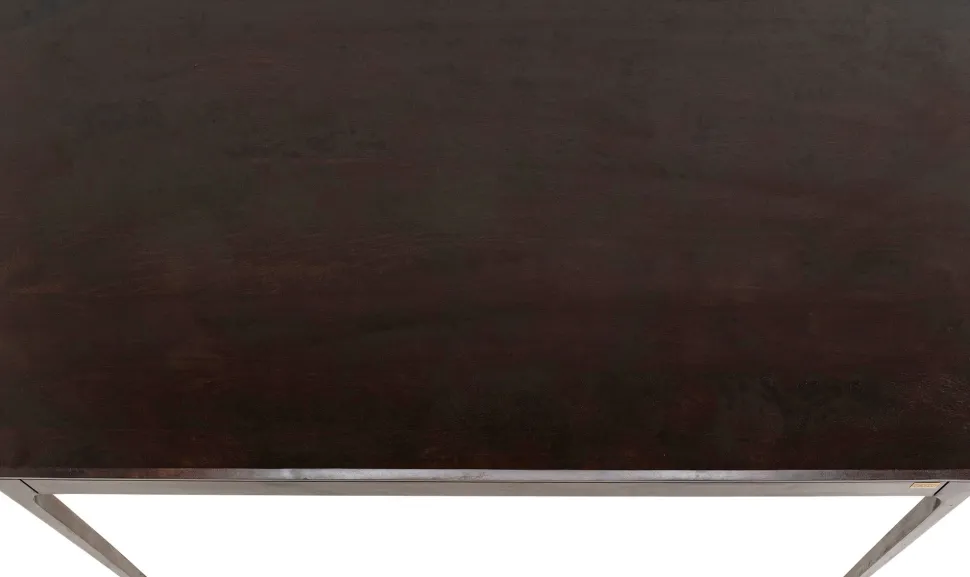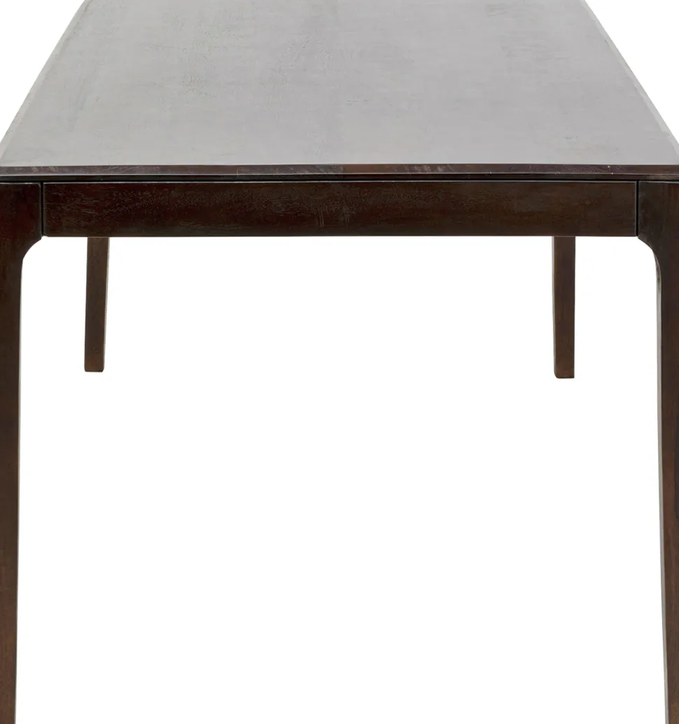 - Rechteckiger Tisch aus hochwertigem, gebeizt-lackiertem Massivholz in der Farbe Walnuss für vier bis sechs Personen