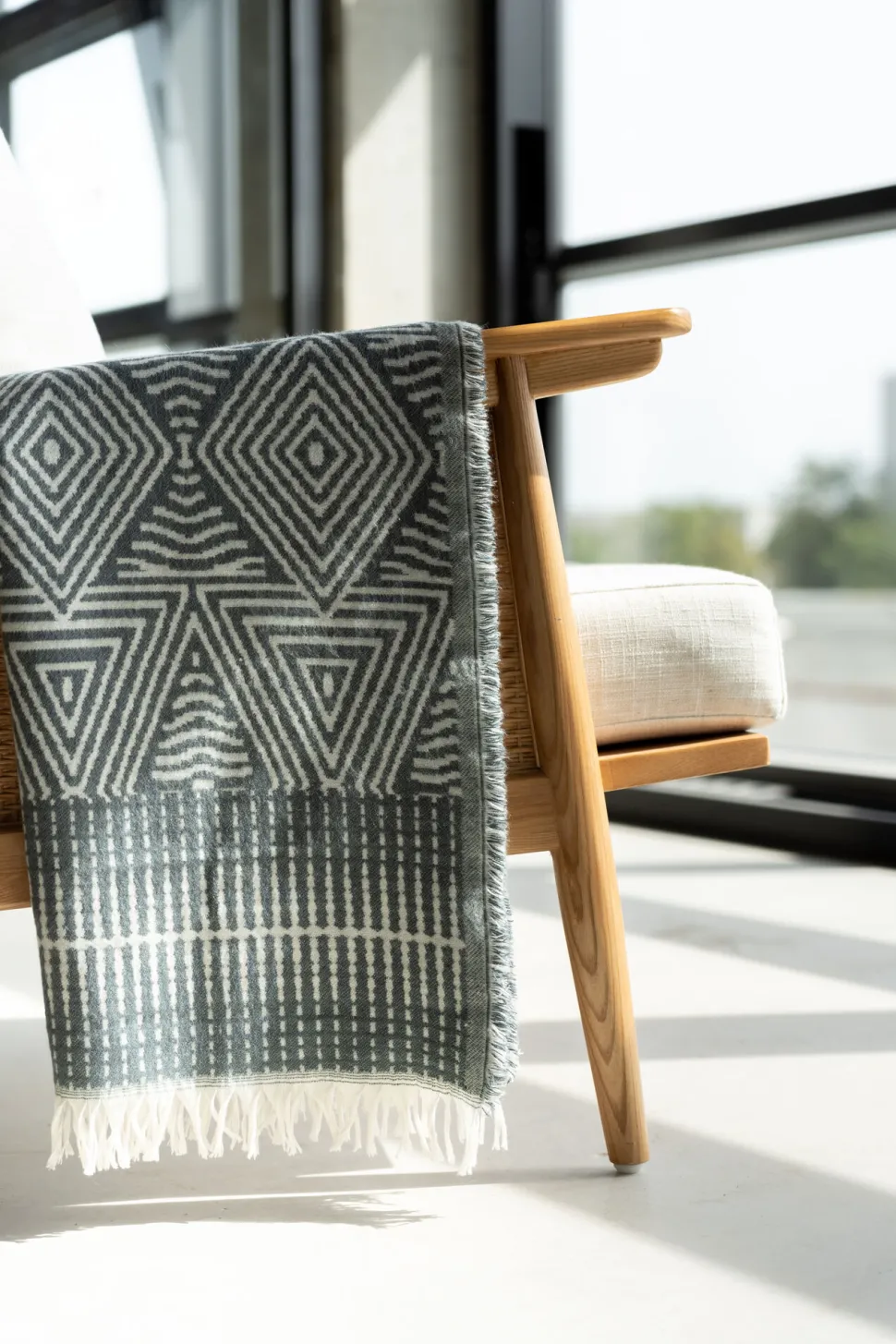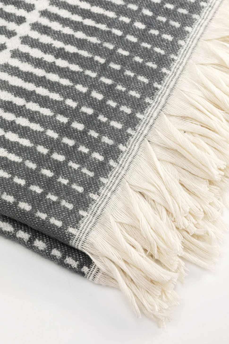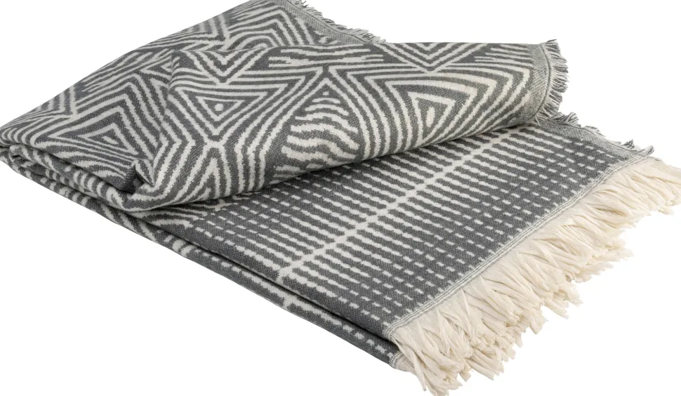 - Das boho-inspirierte Muster in Grau und Weiß setzt sanfte, ästhetische Akzente auf Sofa, Sessel oder Bett