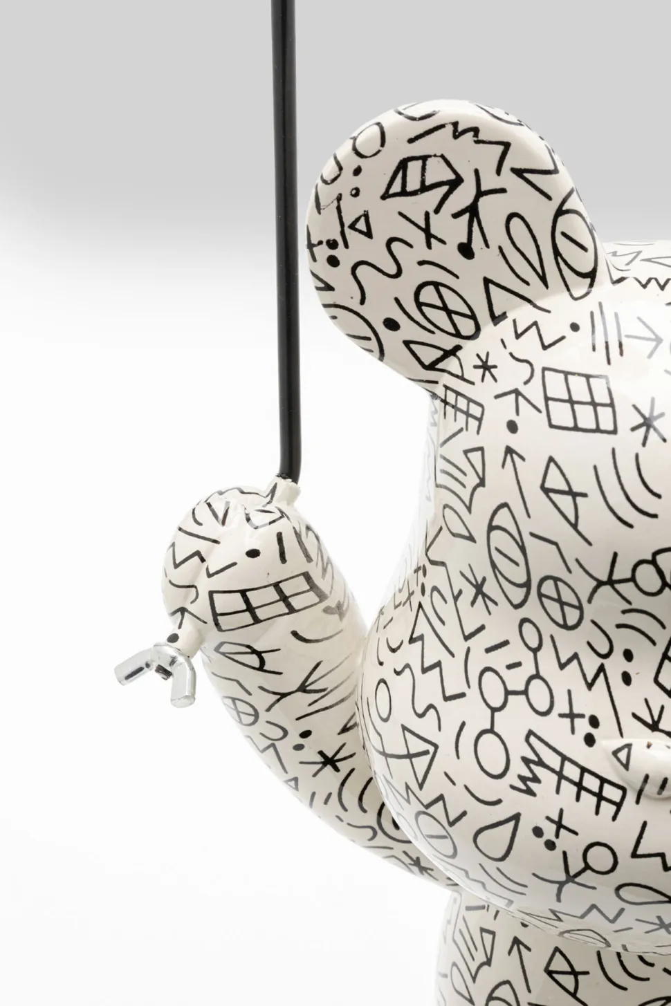 - Die Musterung aus kleinen Symbolen auf der Bärenfigur ergeben einen abstrakten, außergewöhnlichen Look