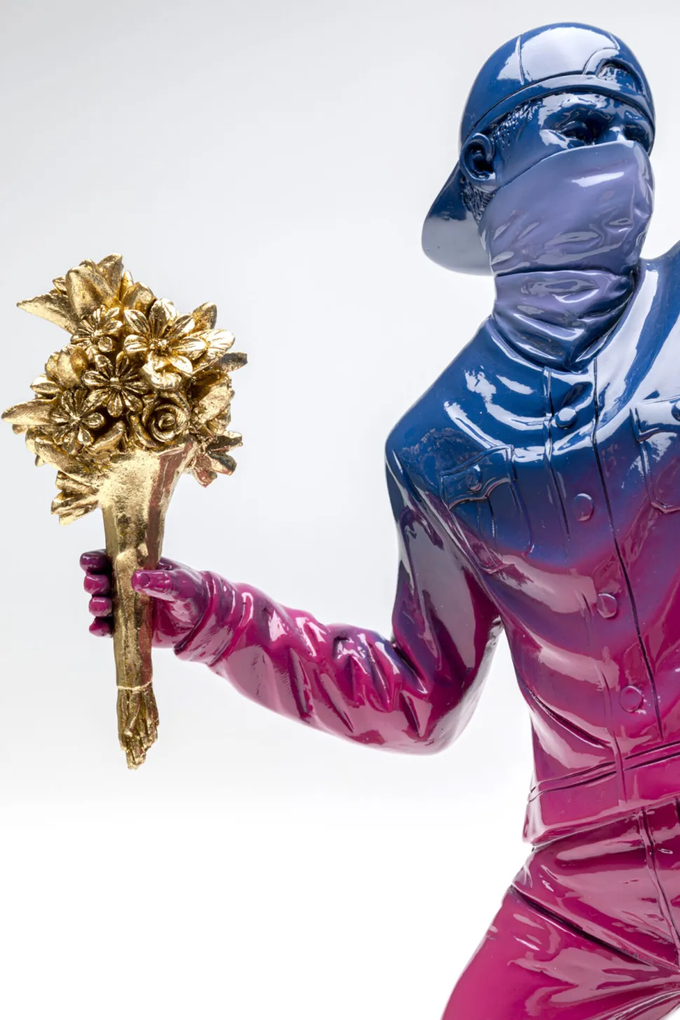 - Diese Skulptur eines Mannes mit Blumenstrauß in der Hand bringt Dynamik ins Interieur
