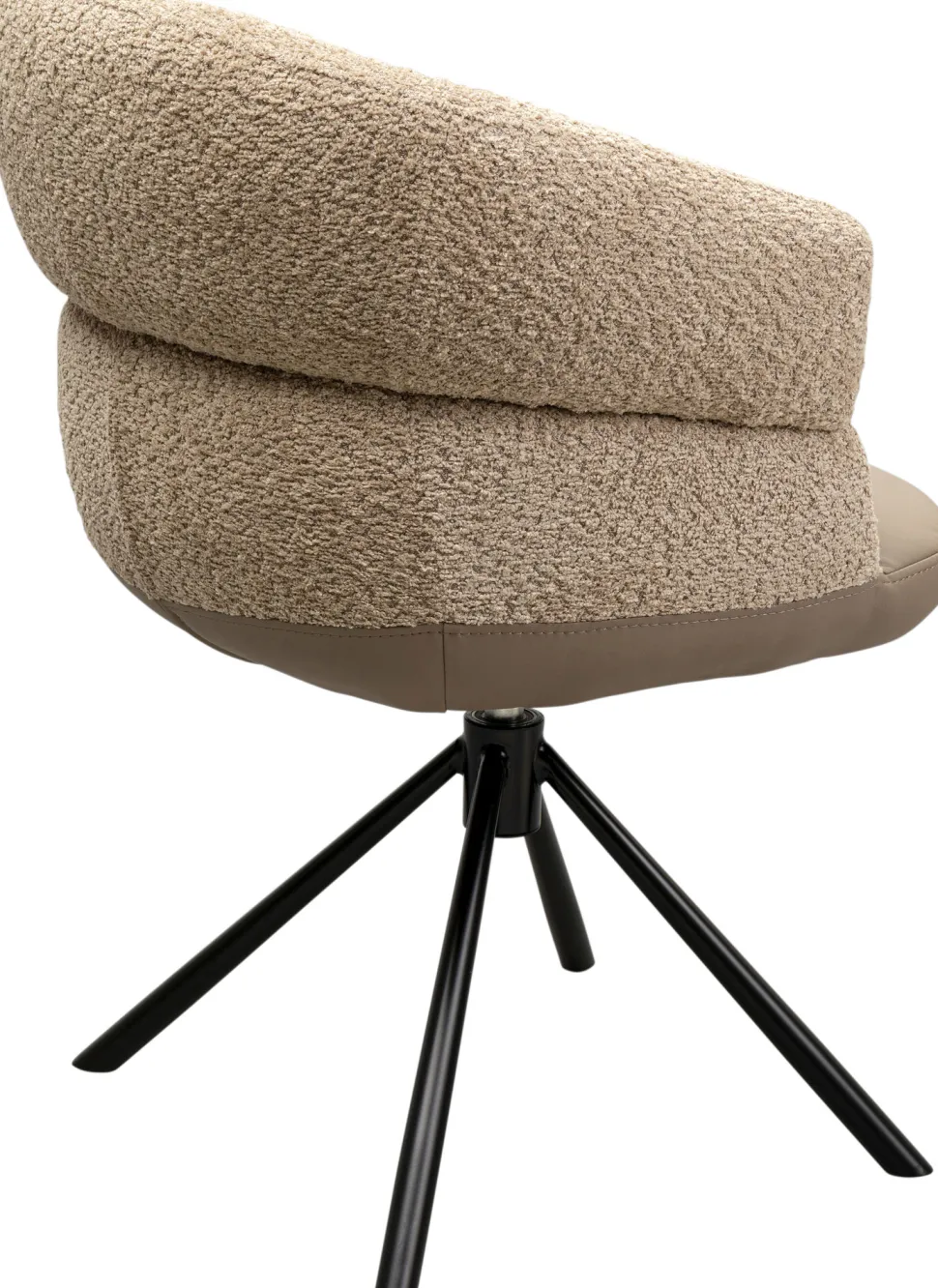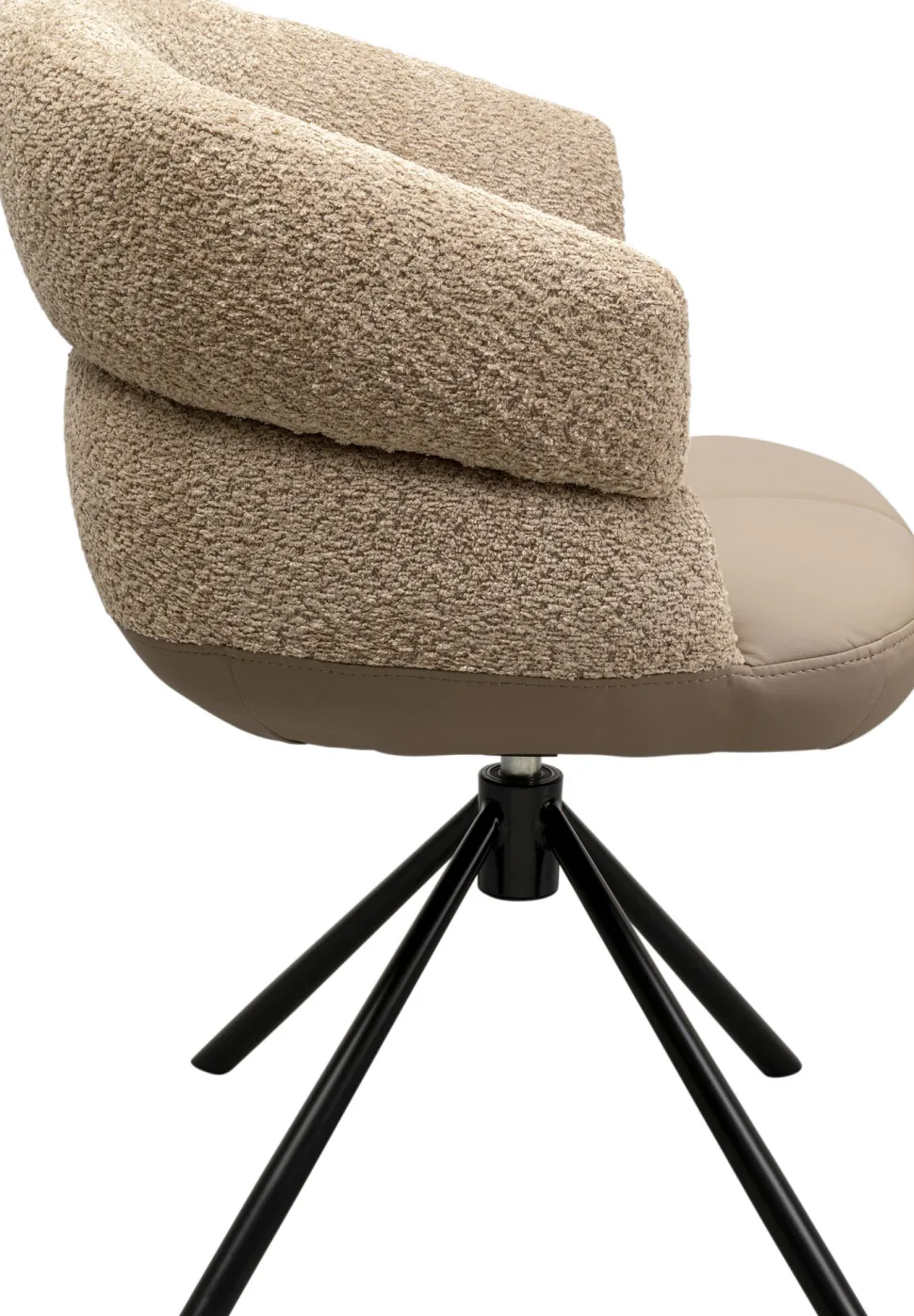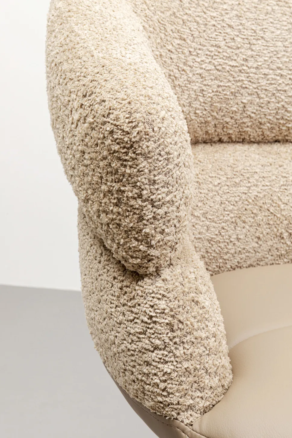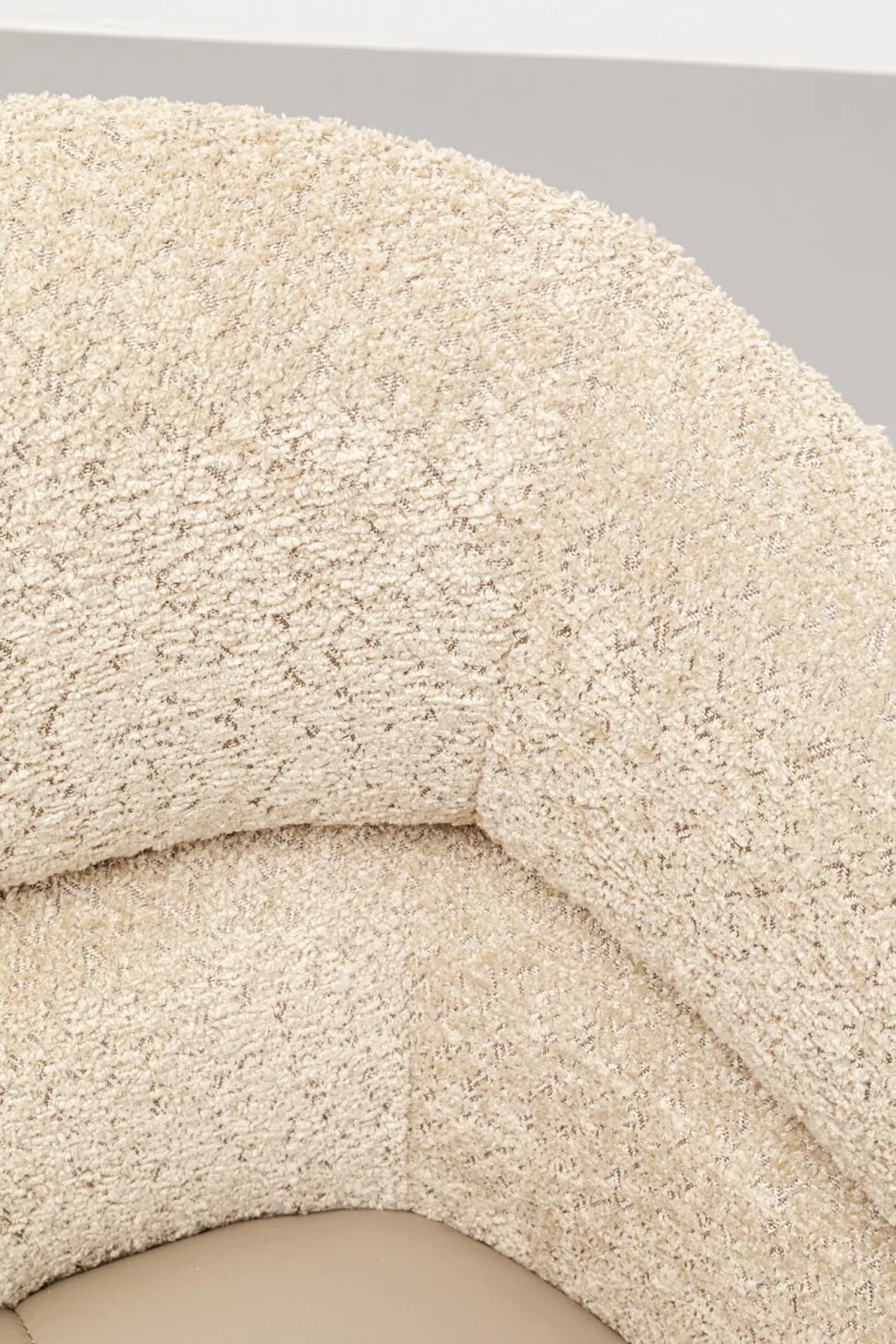- Der Mix aus weichem Bouclé und der Sitzfläche in Leder-Optik schafft eine harmonische und moderne Ästhetik