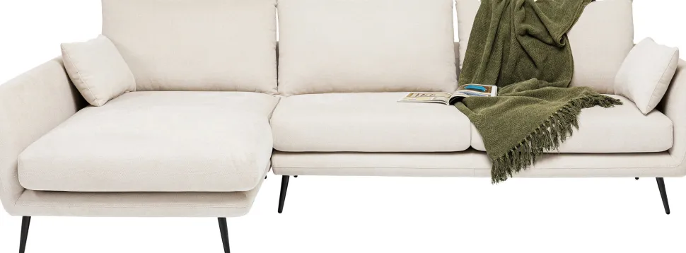 - Modernes Eck-Sofa mit Ottomane links in Hell-Beige mit hochwertigem Textilbezug, 83 x 275 x 159 Zentimeter (H/B/T)