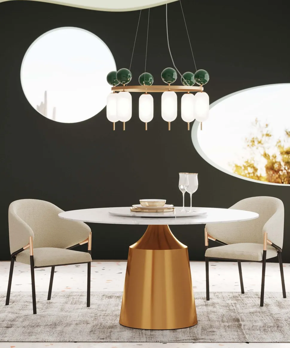 - Hängeleuchte aus Metall und Glas in Weiß, Grün und Gold, 120 x 68 x 68 Zentimeter (H/B/T)