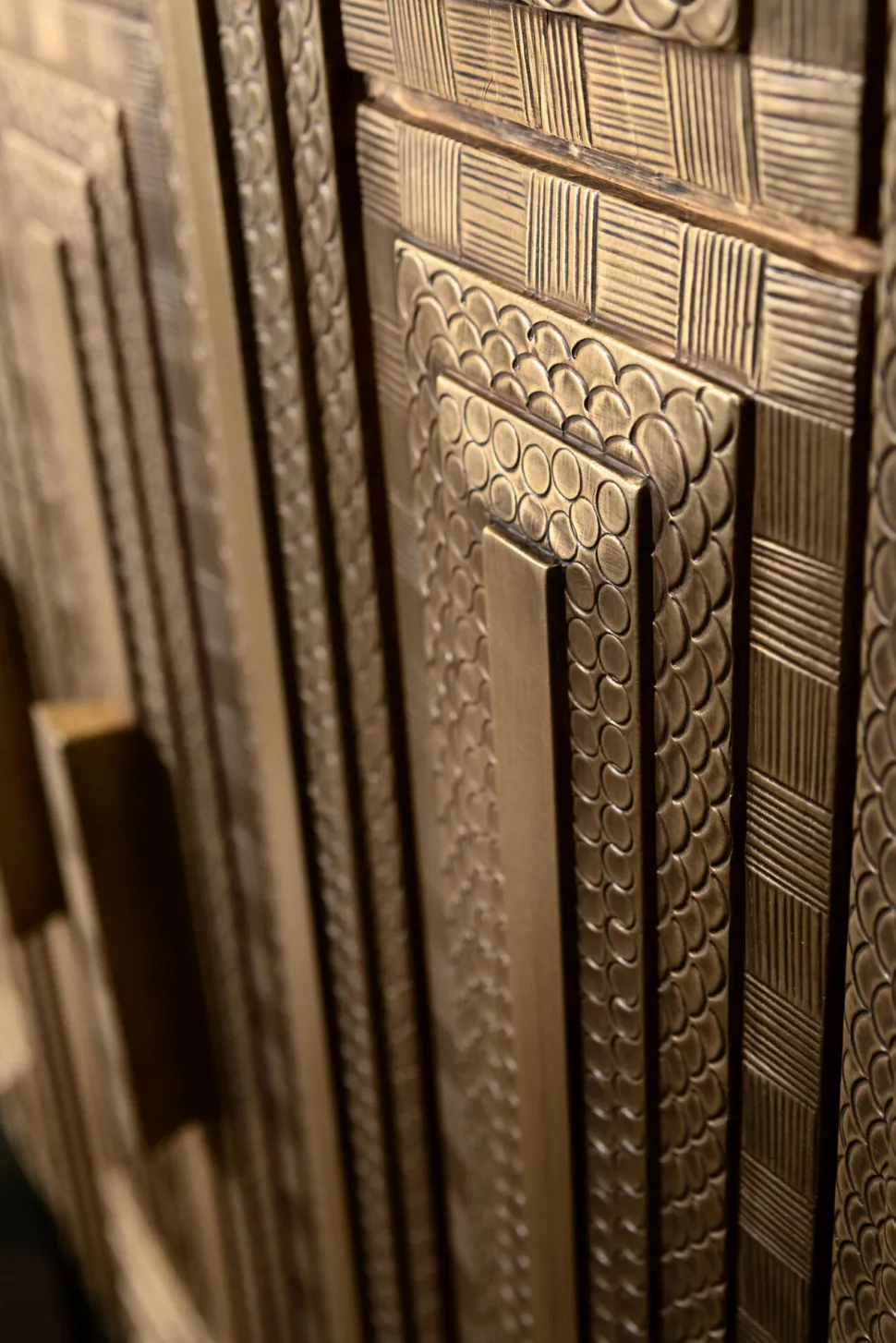 - Spektakulärer Hochschrank mit kunstvoller, reich mit Ornamenten verzierter Front – Kunsthandwerk auf höchstem Niveau