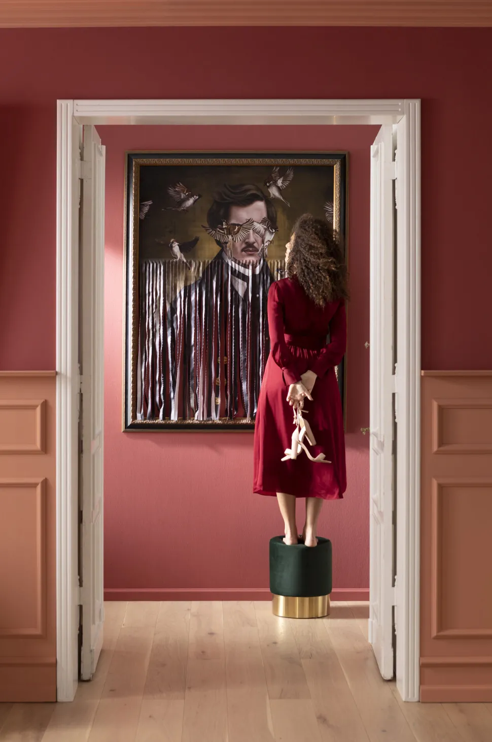- Dunkelgrüner Samthocker mit glänzendem Metallsockel – das schnellste Style-Upgrade für die eigenen vier Wände!