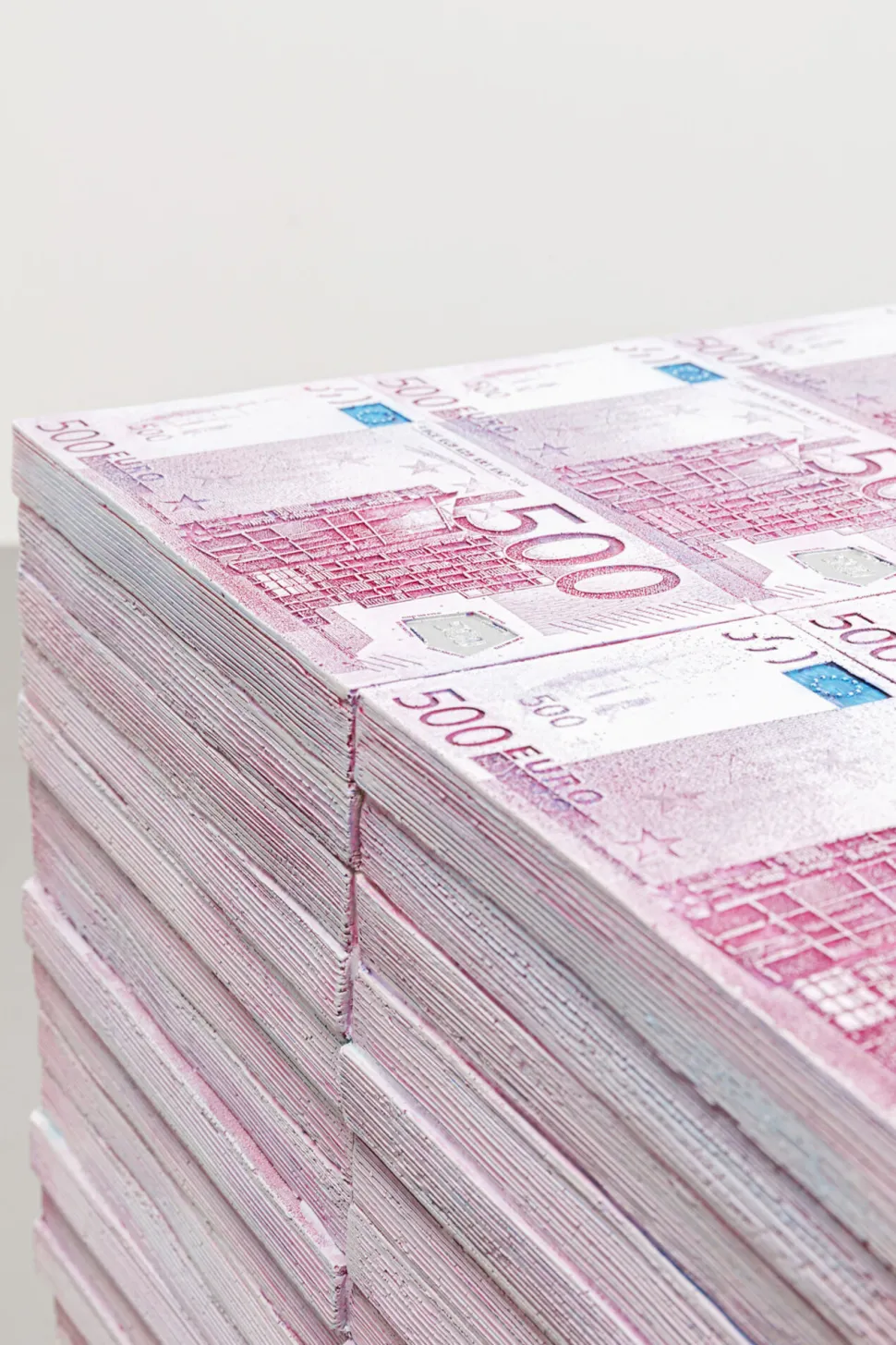 - Ausgefallener Hocker in Rosa mit Geldschein-Motiv, 38 x 29 x 29.5 Zentimeter (H/B/T)