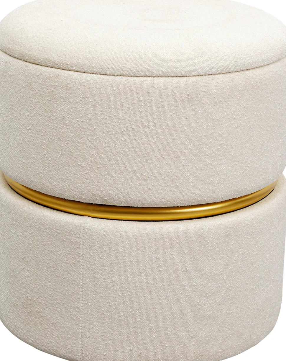 - Runder Polsterhocker mit Stauraum in Beige und Gold, 44 x 40 x 40 Zentimeter (H/B/T)