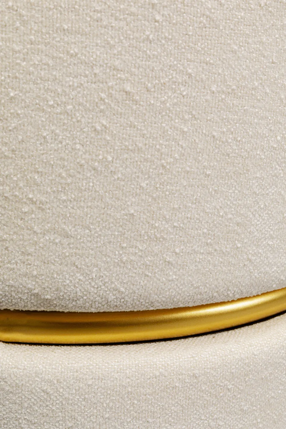 - Der weiche Bouclé-Bezug in kühlem Beige schafft eine einladende, zeitlose Optik