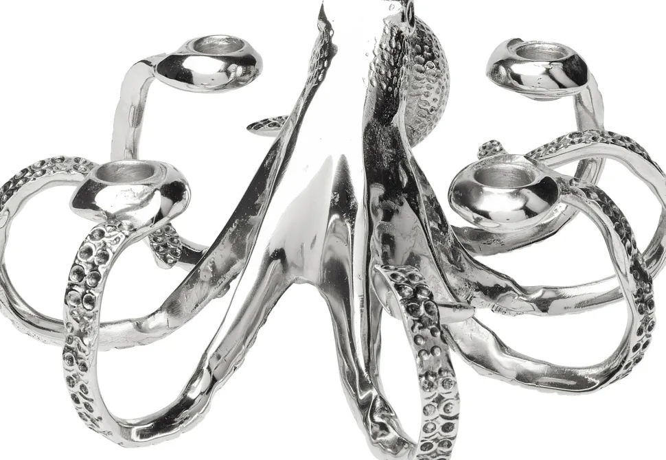 - Silbrig schimmernder Kerzenleuchter in Form eines Tintenfisches mit Haltern für vier Stabkerzen