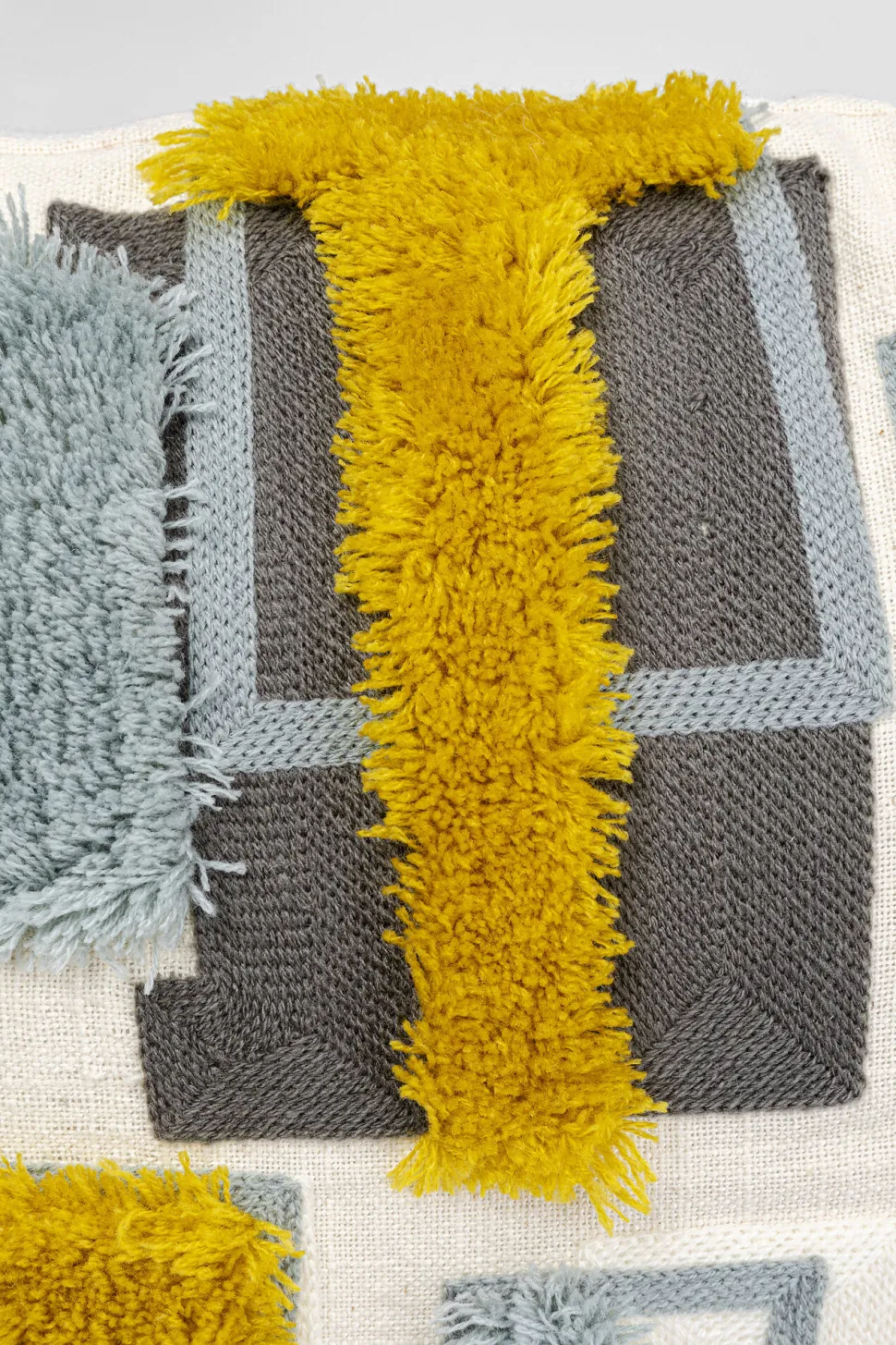 - Ausgefallener Mix aus flauschigen Oberflächen und unterschiedlichen Webarten