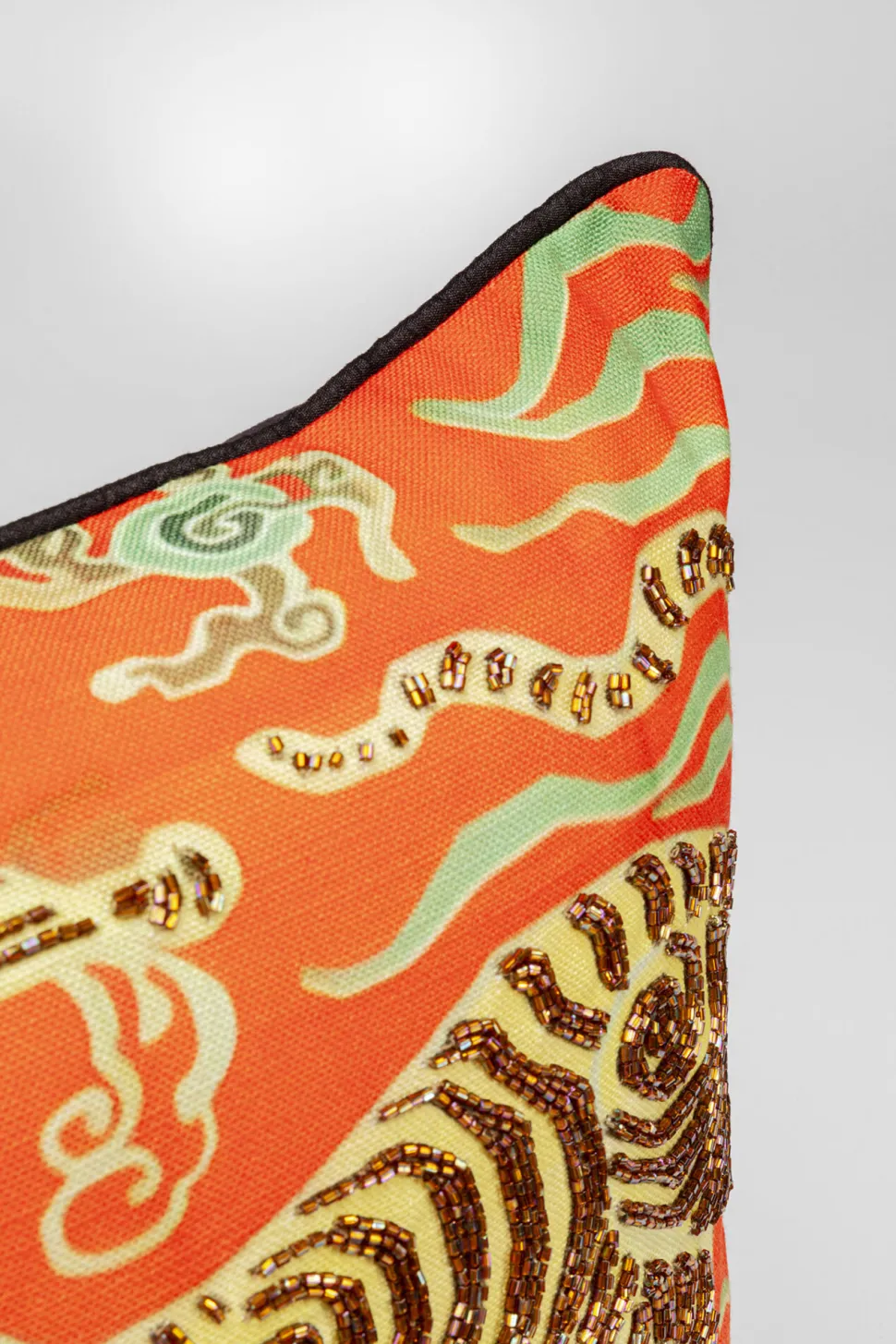 - Glänzende Applikationen aus feinen Perlen verleihen dem Kissen eine luxuriöse und exklusive Note