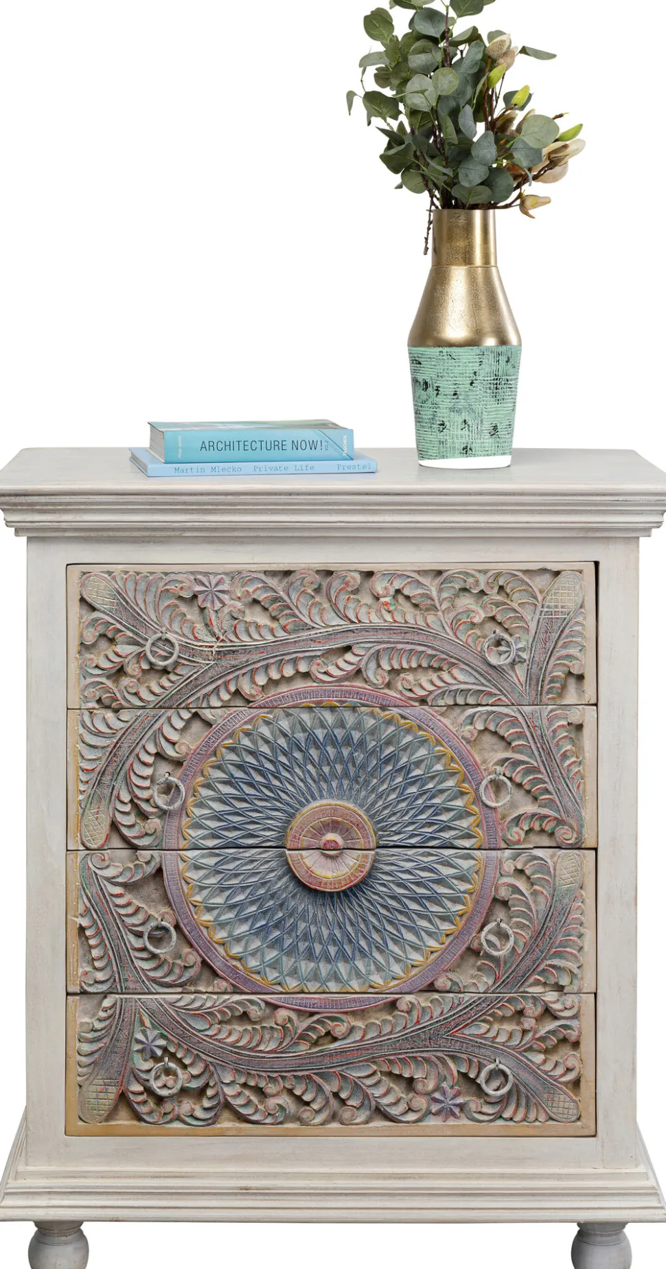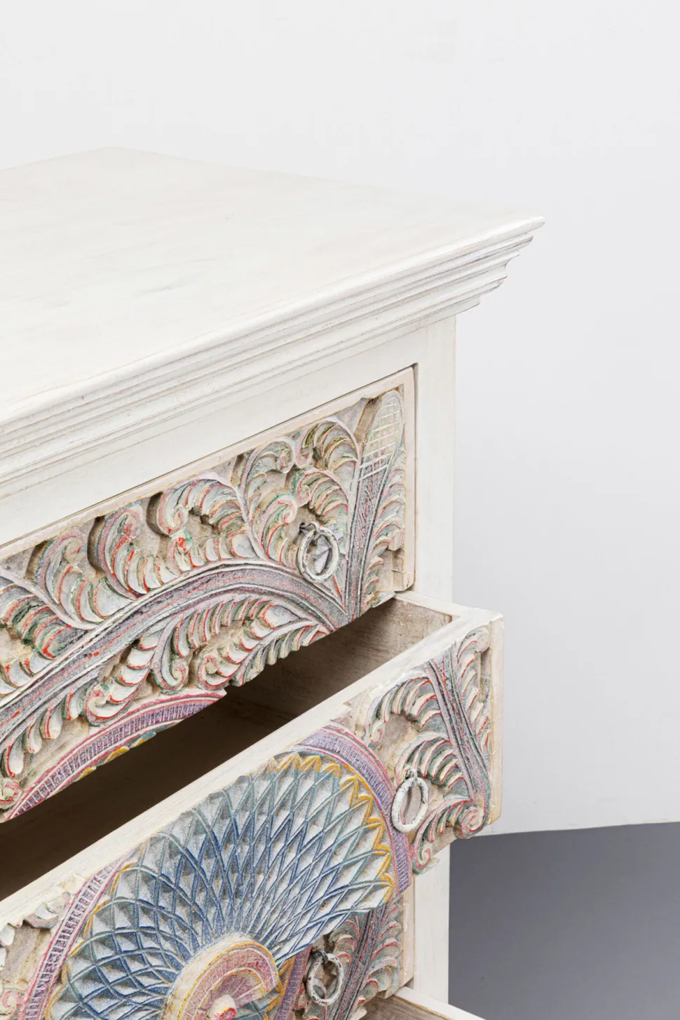 - Kleine Kommode mit Korpus und Fronten aus Mango-Massivholz, Grundfarbe Weiß, 110 x 90 x 45 Zentimeter (H/B/T)