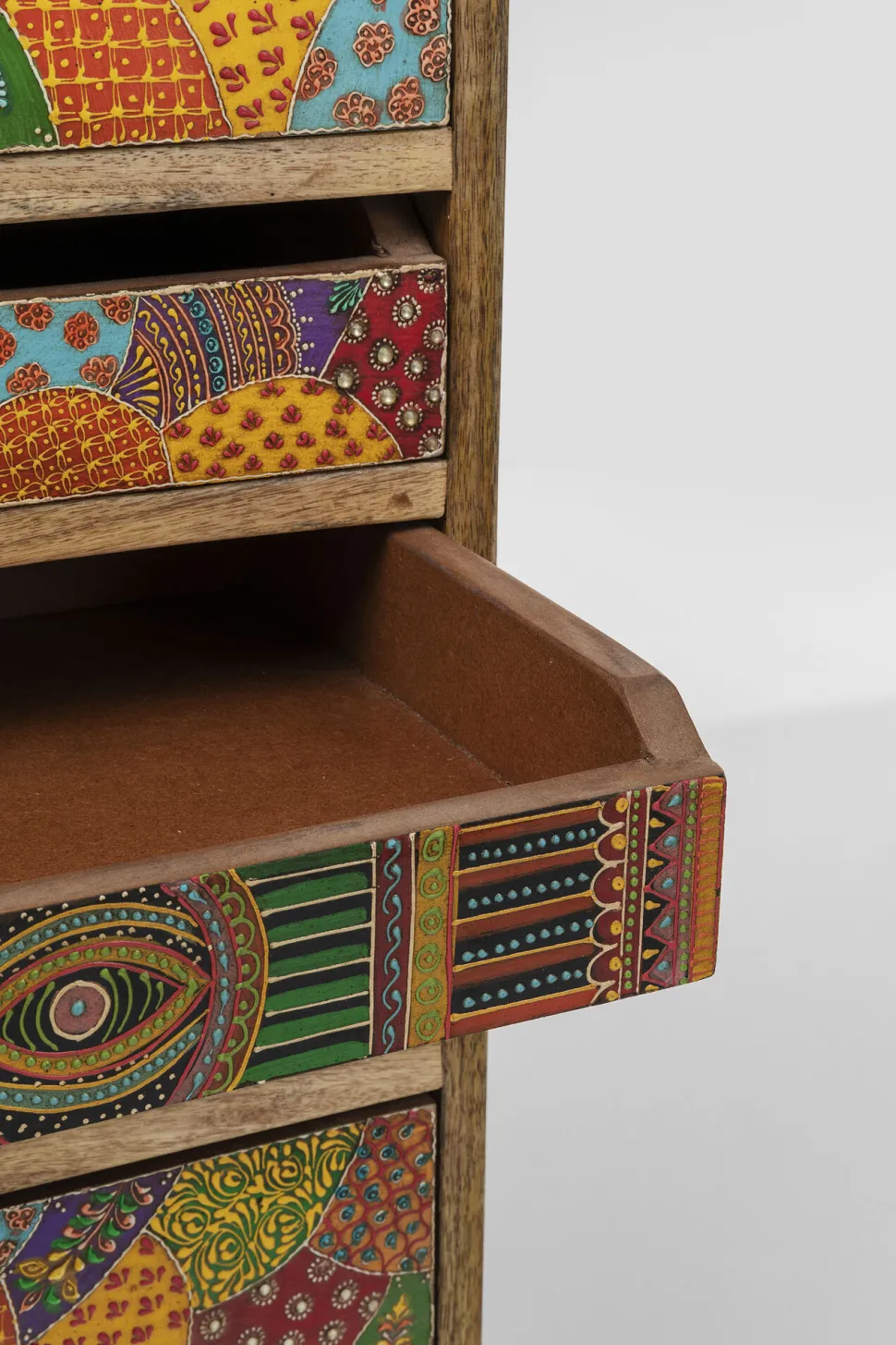 - Handgearbeitete Holzkommode mit sehr viel Stauraum und vor allem einer bunten Front im Ethno-Stil