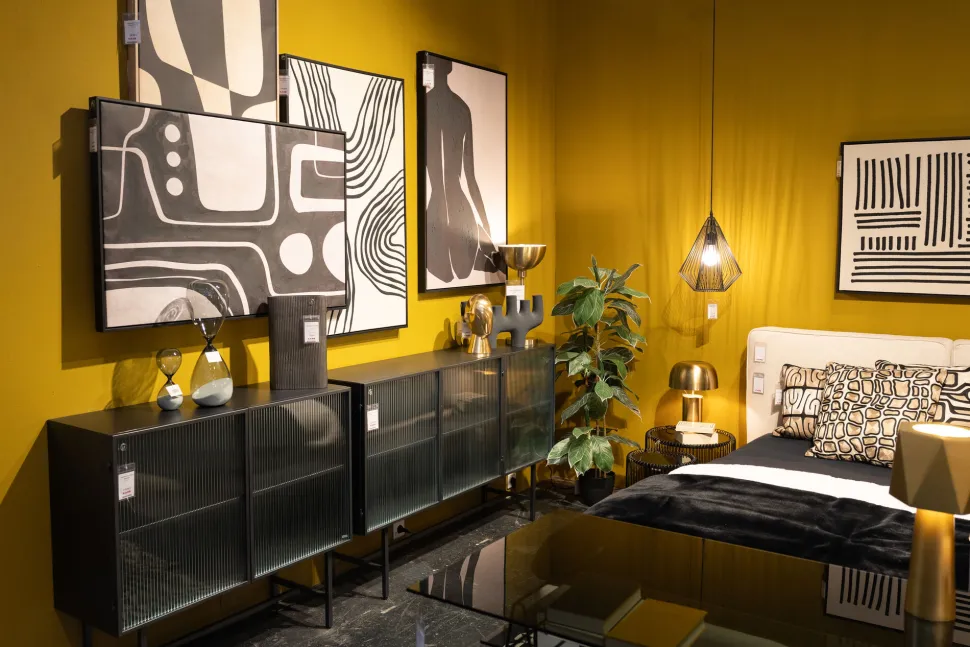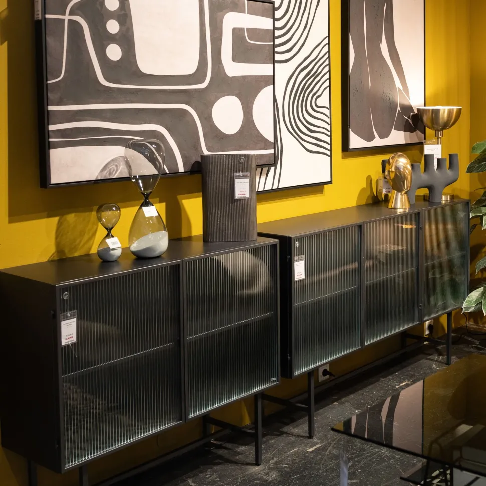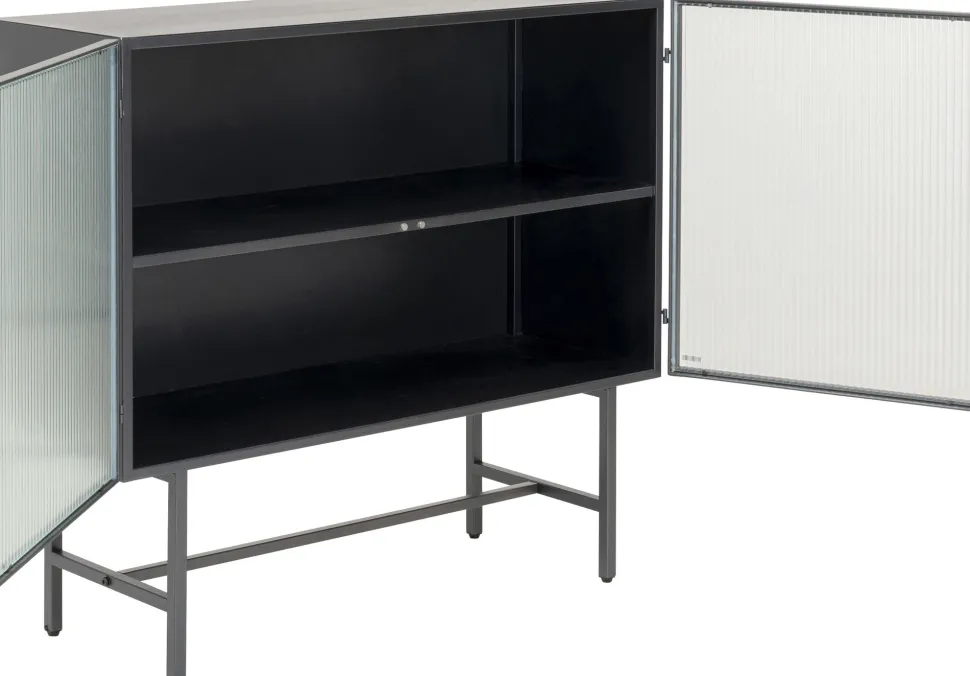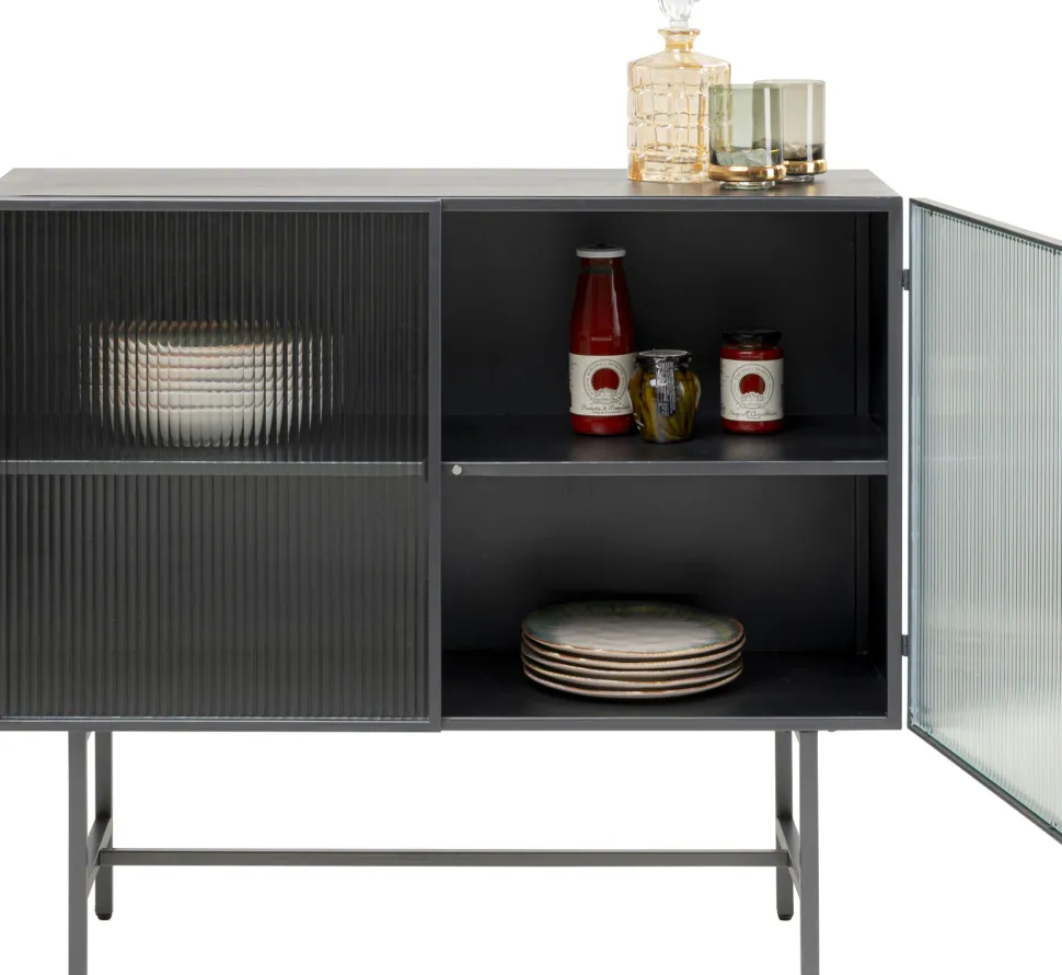 - Die Glastüren mit Wellenschliff verleihen dem modernen Sideboard optische Leichtigkeit