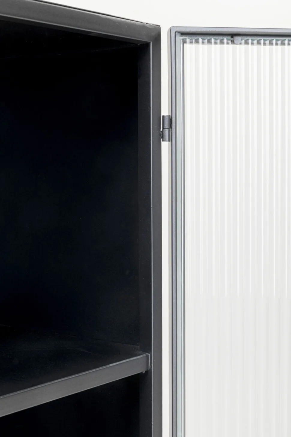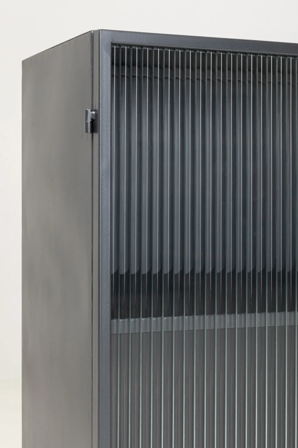 - Schwarzer Kommodenschrank aus Metall mit Glastüren, 90 x 100 x 35 Zentimeter (H/B/T)