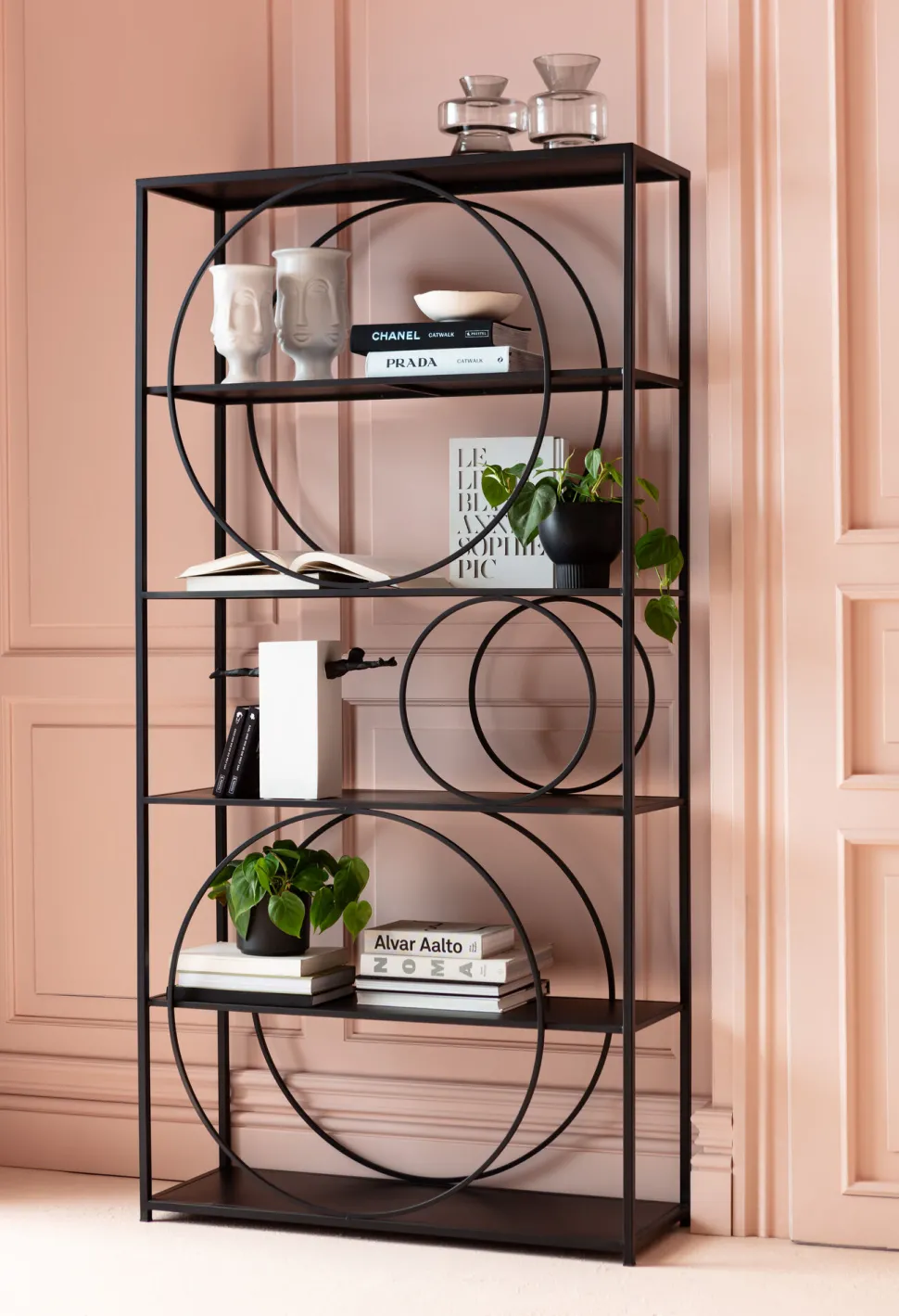 - Sechs Regalböden mit viel Platz für Bücher, Deko und Pflanzen