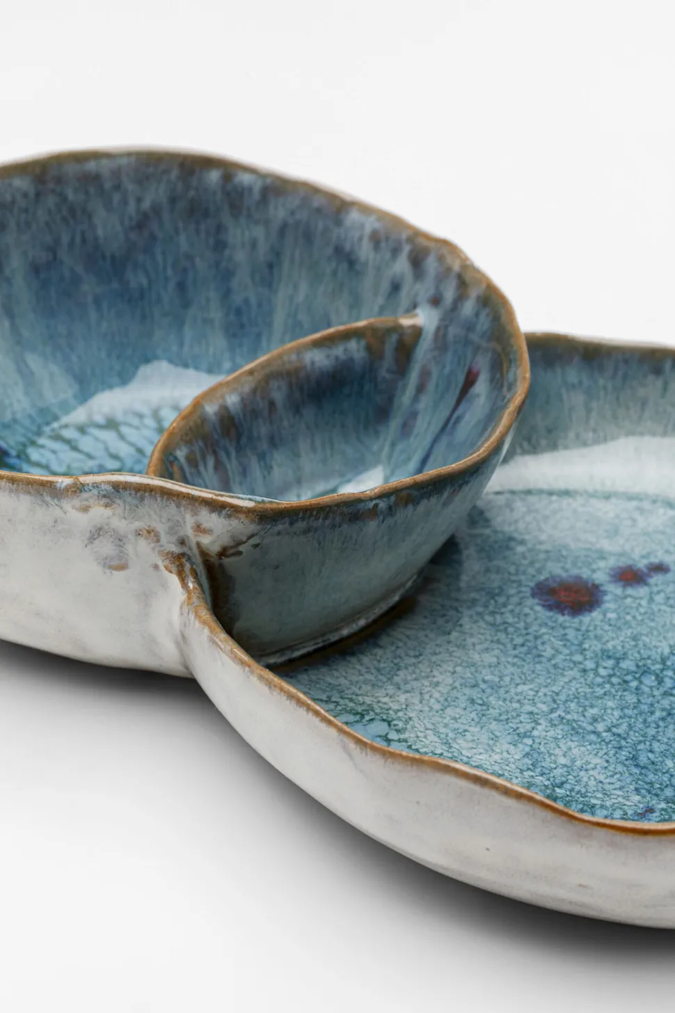 - Kleine Dip-Schalen aus Porzellan in Blau und Braun, 4.6 x 12 x 21.7 Zentimeter (H/B/T)