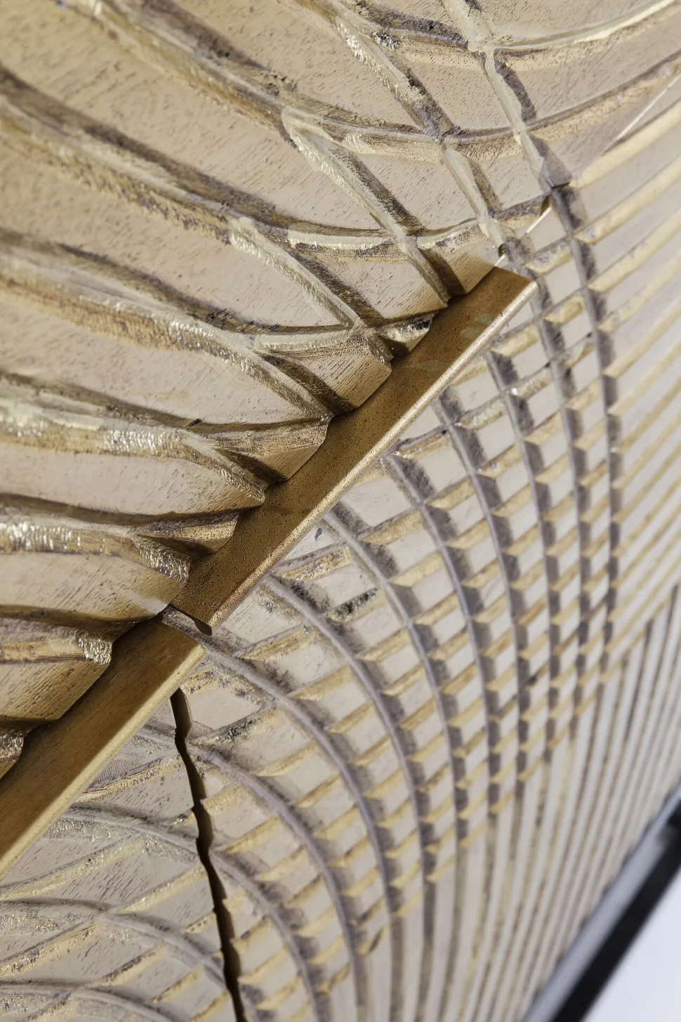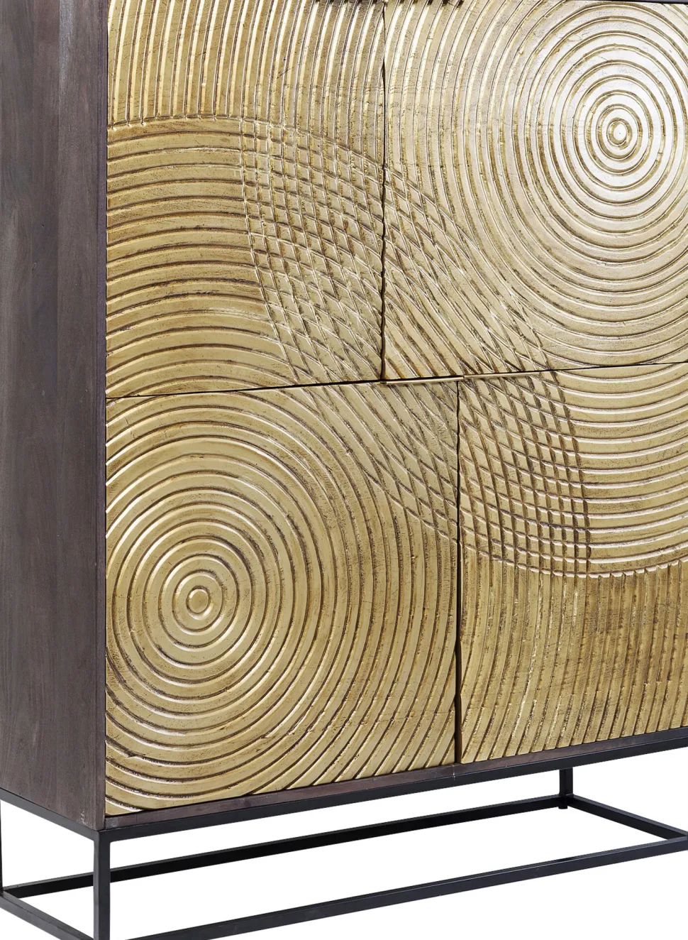 - Mit einem kunstvollen Kreismuster auf der Front aus massivem Holz
