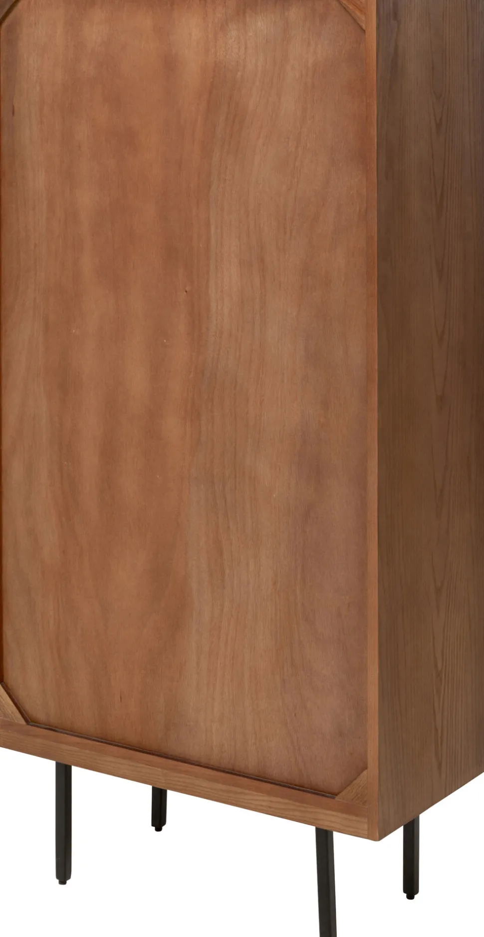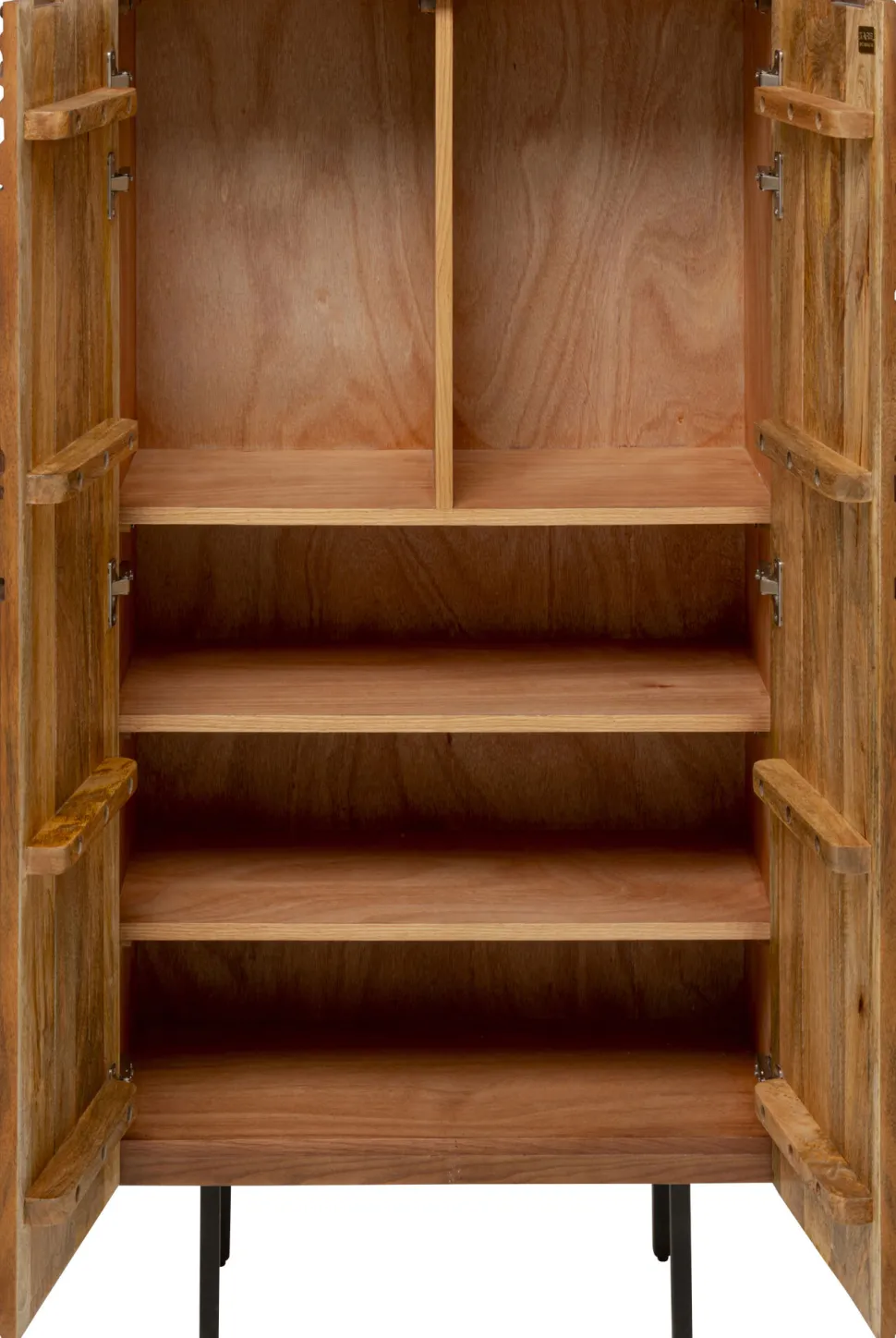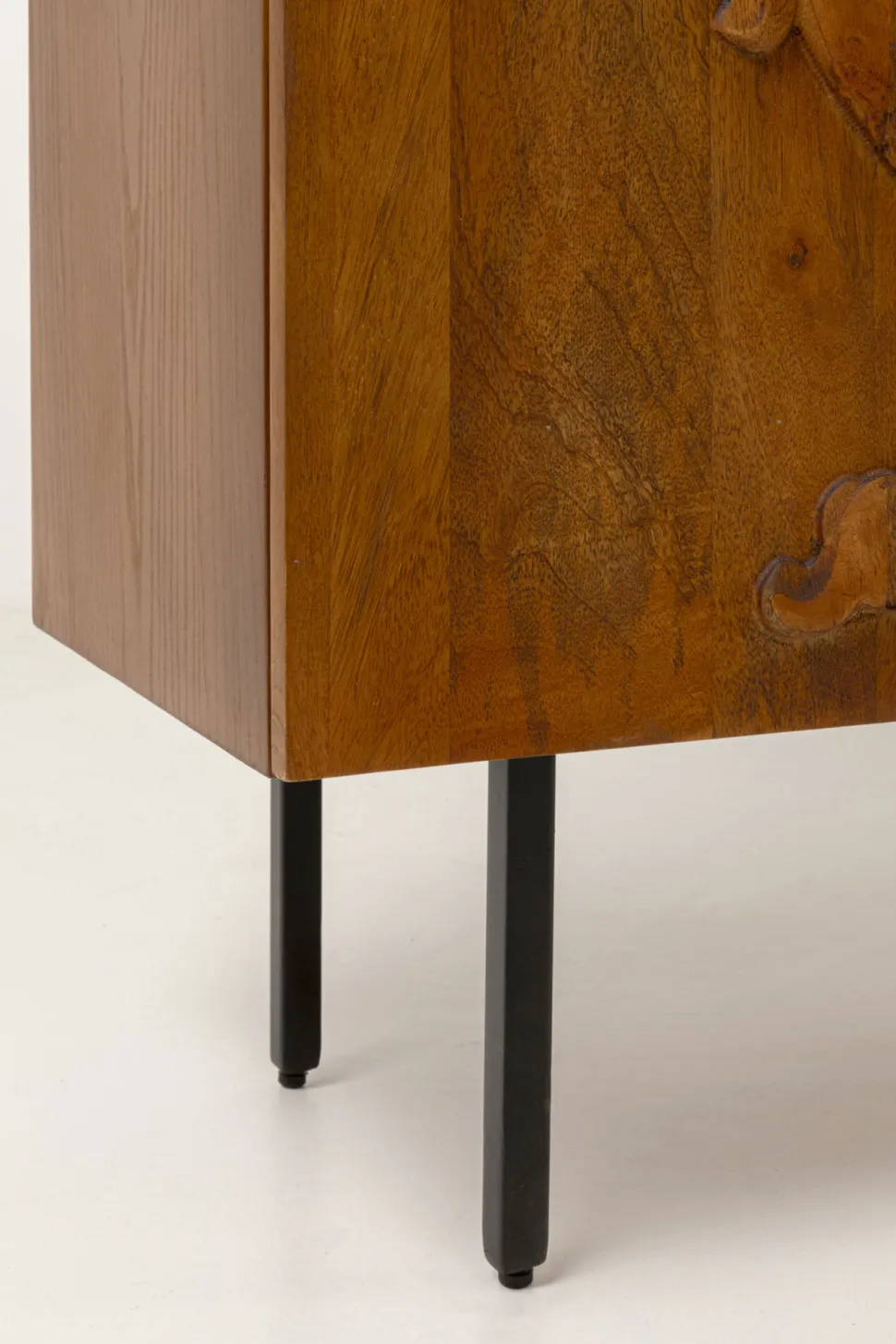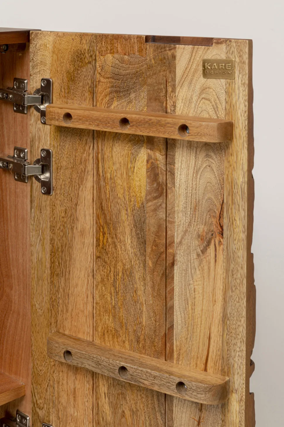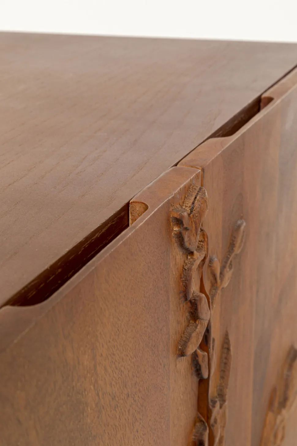 - Brauner Schrank aus Mango-Holz mit Blumen-Details, 141 x 70 x 36 Zentimeter (H/B/T)