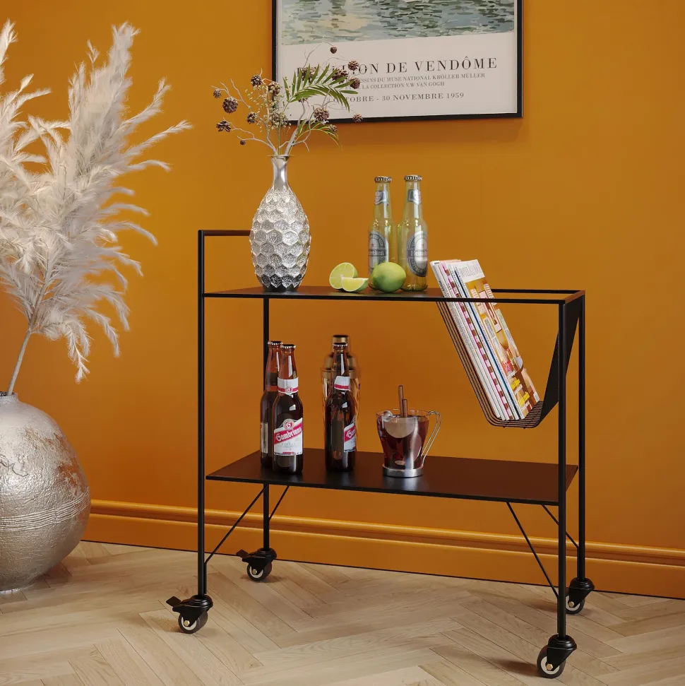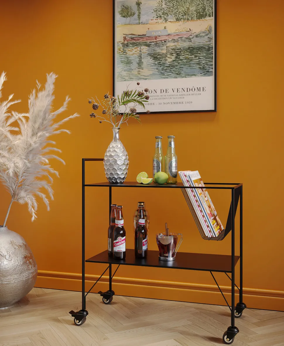 - Barwagen in Schwarz mit praktischen, feststellbaren Rollen