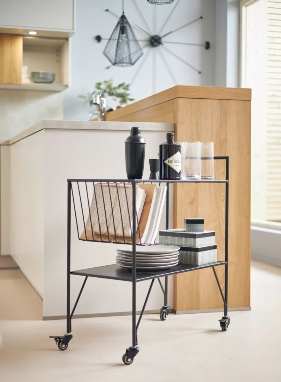 - Im Wohn- oder Esszimmer als rollende Hausbar oder Ergänzung zum Tisch. Im industriestil ein perfektes, mobiles Möbel