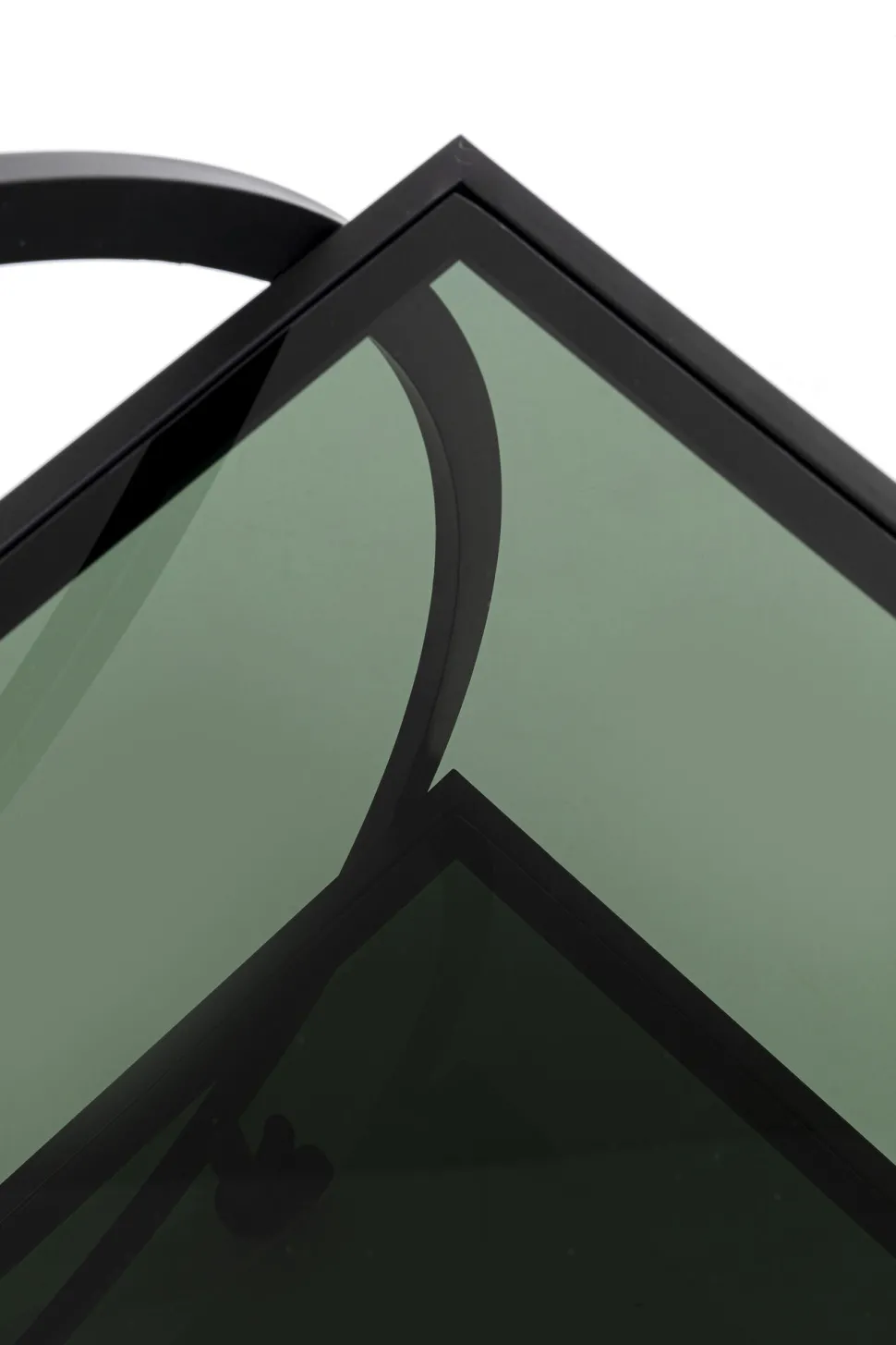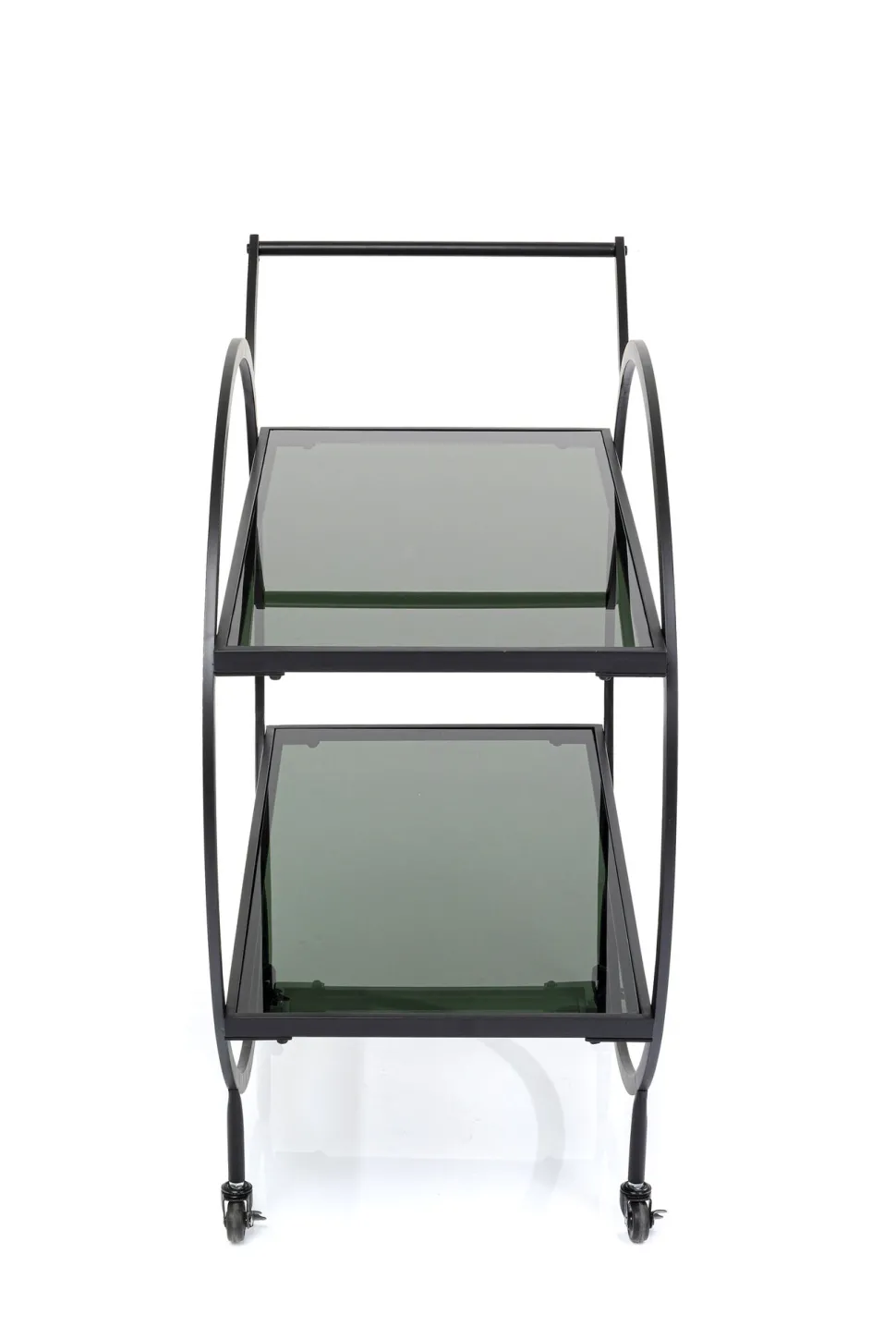 - Eleganter Servierwagen in Schwarz mit dunklen Glasplatten und einem Hauch Retro-Design