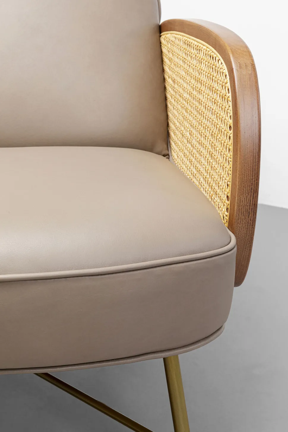 - Sessel aus Echtleder mit Armlehnen aus Rattan, 80 x 60 x 81 Zentimeter (H/B/T)