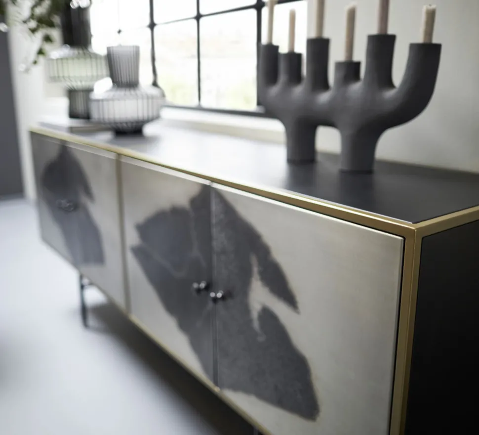 - Kunstvoll: breites Sideboard mit einzigartigen Fronten