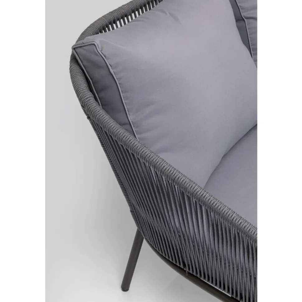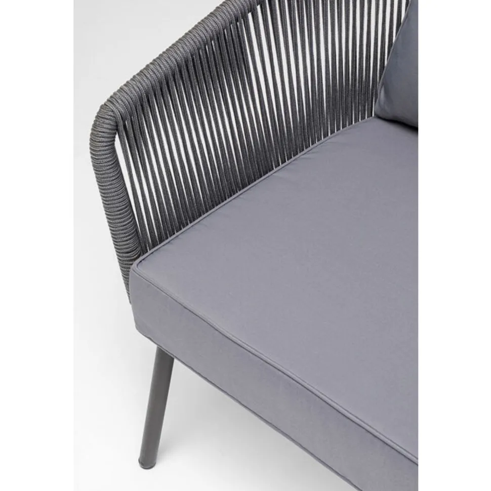 - Outdoor Sitzgruppe in Grau, vierteilig mit Dreisitzer-Sofa, zwei Sesseln, Kissen und rechteckigem Couchtisch