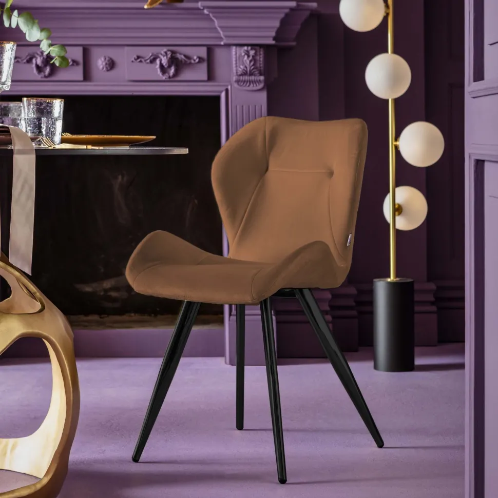 - Brauner Esszimmerstuhl mit schwarzen Beinen aus Metall