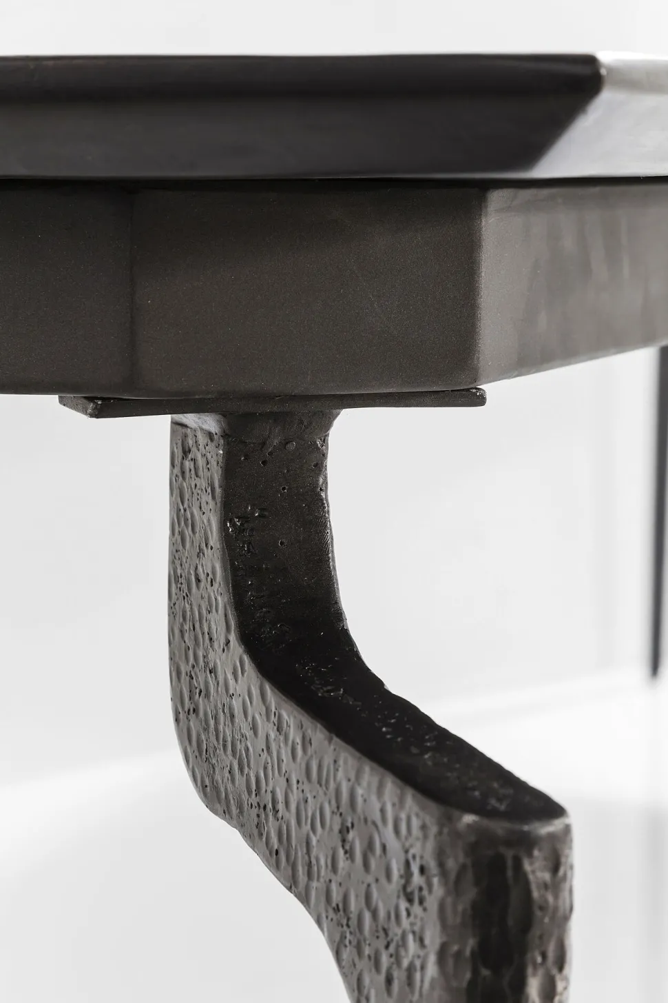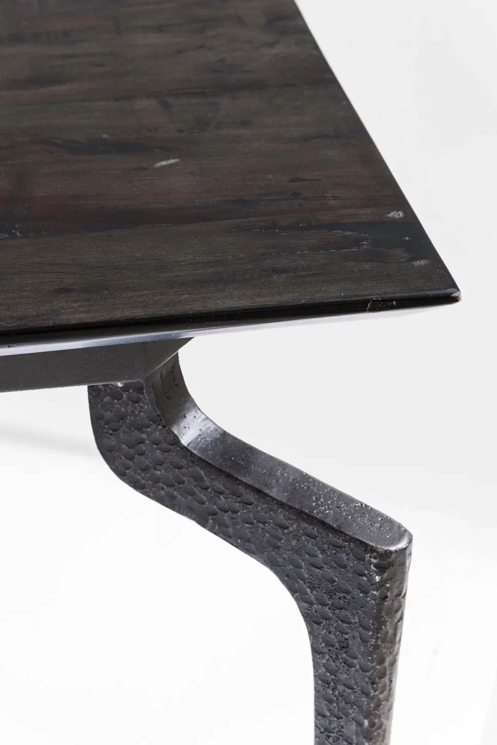 - Einzigartig: Die raffiniert geformten, gehämmerten Stahl-Beine und die schrägen Tisch-Kanten