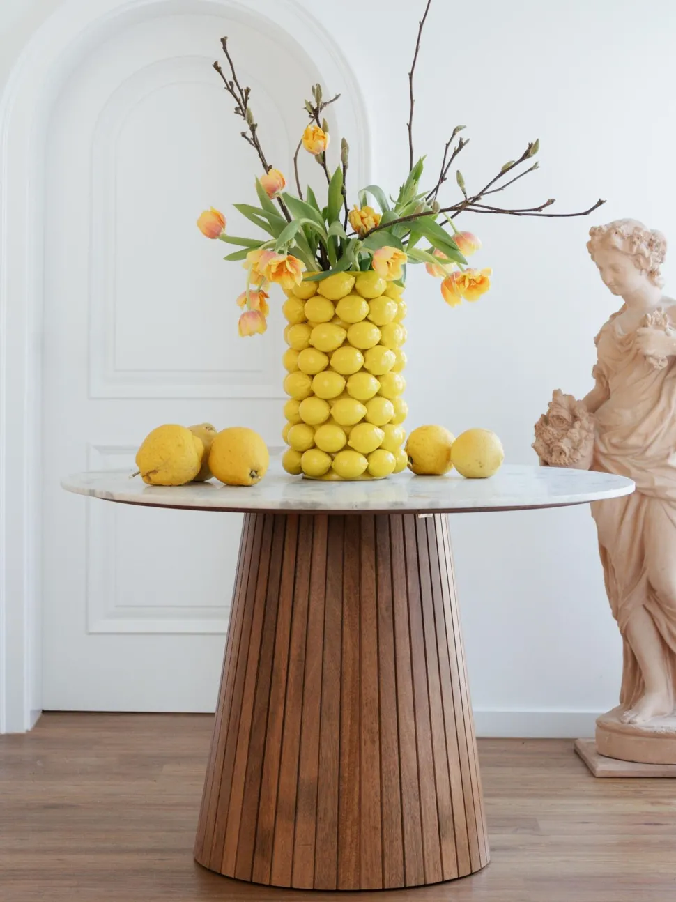 - Runder Esstisch aus Marmor und Holz, 75 x 115 x 115 Zentimeter (H/B/T)