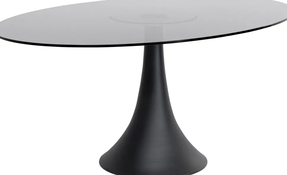 - Ovaler Esstisch mit grau gefärbter Tischplatte aus ESG-Glas 77x180x120cm (H/B/T)