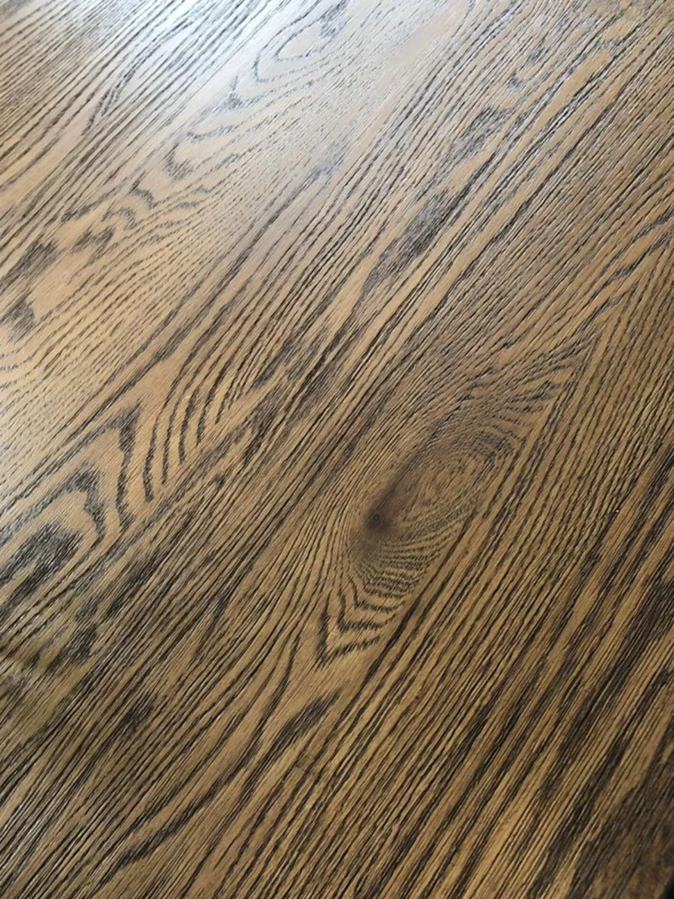 - Geöltes Eichenholz und mattschwarze Stahlfüße geben dem Tisch einen lässigen Industrial-Touch