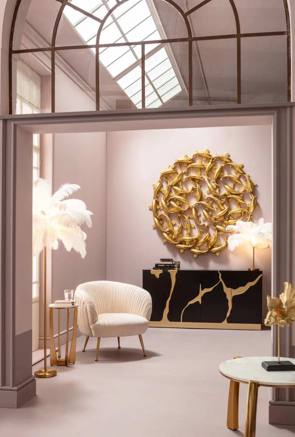 - Glam-Highlight für Sideboards vor farbigen Wänden
