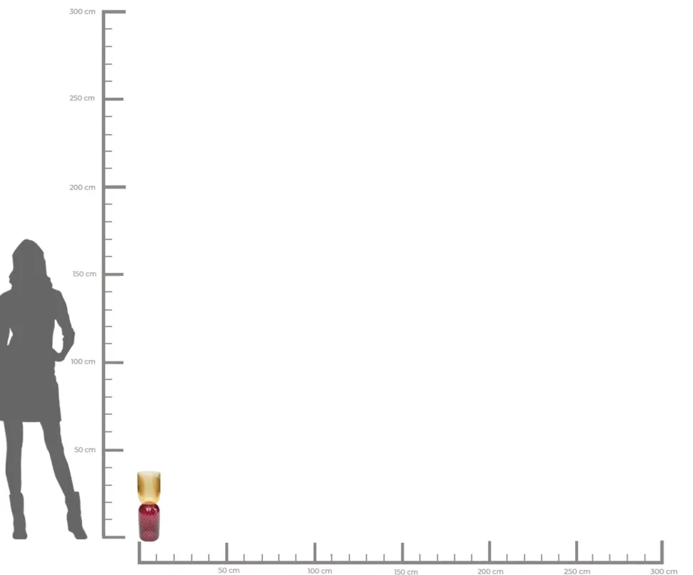 - Blumenvase aus Glas in Gelb und Violett-Rot in Zylinderform mit schlanker Taille