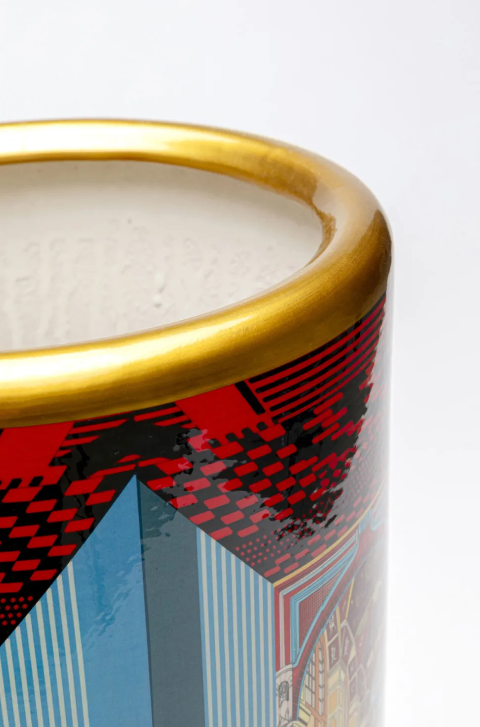 - Bunte Vase mit Palast-Motiv und goldenen Details, 46 x 20 x 20 Zentimeter (H/B/T)